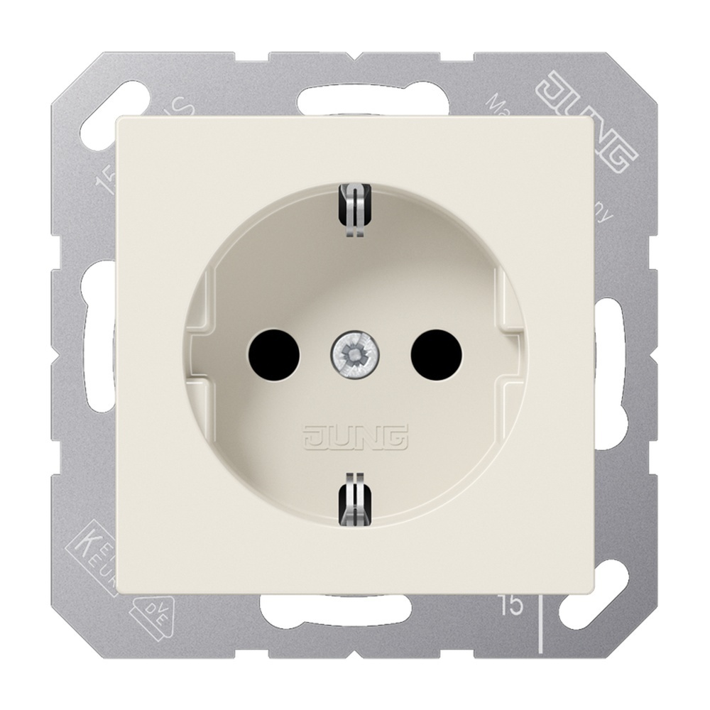 Jung SCHUKO Steckdose A1521BF SCHUKO -Steckdose, 16 A 250 V ~, Schraubklemmen, Thermoplast, Serie AS, weiß SCHUKO -Steckdose, weißmit Schraubklemmen für starre und flexible Leiter bis 2,5 mm2Verbindungsklemmen nach DIN VDE 0620Tragring, Krallen und Krallenschrauben sind über eine Erdungsschiene in die Schutzmaßnahme eingebunden.Material: ThermoplastMaße (BxH): 55 x 55 mm Hersteller Jung Nr. A1521BF EAN Nr. 4011377058156 Warengruppe Jung Serie AS