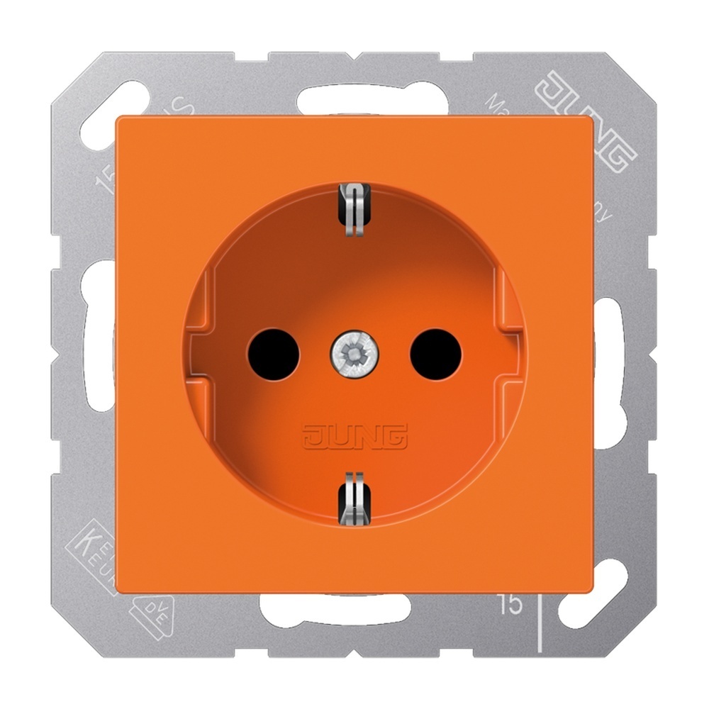 Jung SCHUKO Steckdose A1521BFO SCHUKO -Steckdose, 16 A 250 V ~, Schraubklemmen, Thermoplast, Serie AS/A, orange (für ZSV) SCHUKO -Steckdose, orange (für ZSV)mit Schraubklemmen für starre und flexible Leiter bis 2,5 mm2Verbindungsklemmen nach DIN VDE 0620Tragring, Krallen und Krallenschrauben sind über eine Erdungsschiene in die Schutzmaßnahme eingebunden.Material: ThermoplastMaße (BxH): 55 x 55 mm Hersteller Jung Nr. A1521BFO EAN Nr. 4011377058194 Warengruppe Jung Serie A