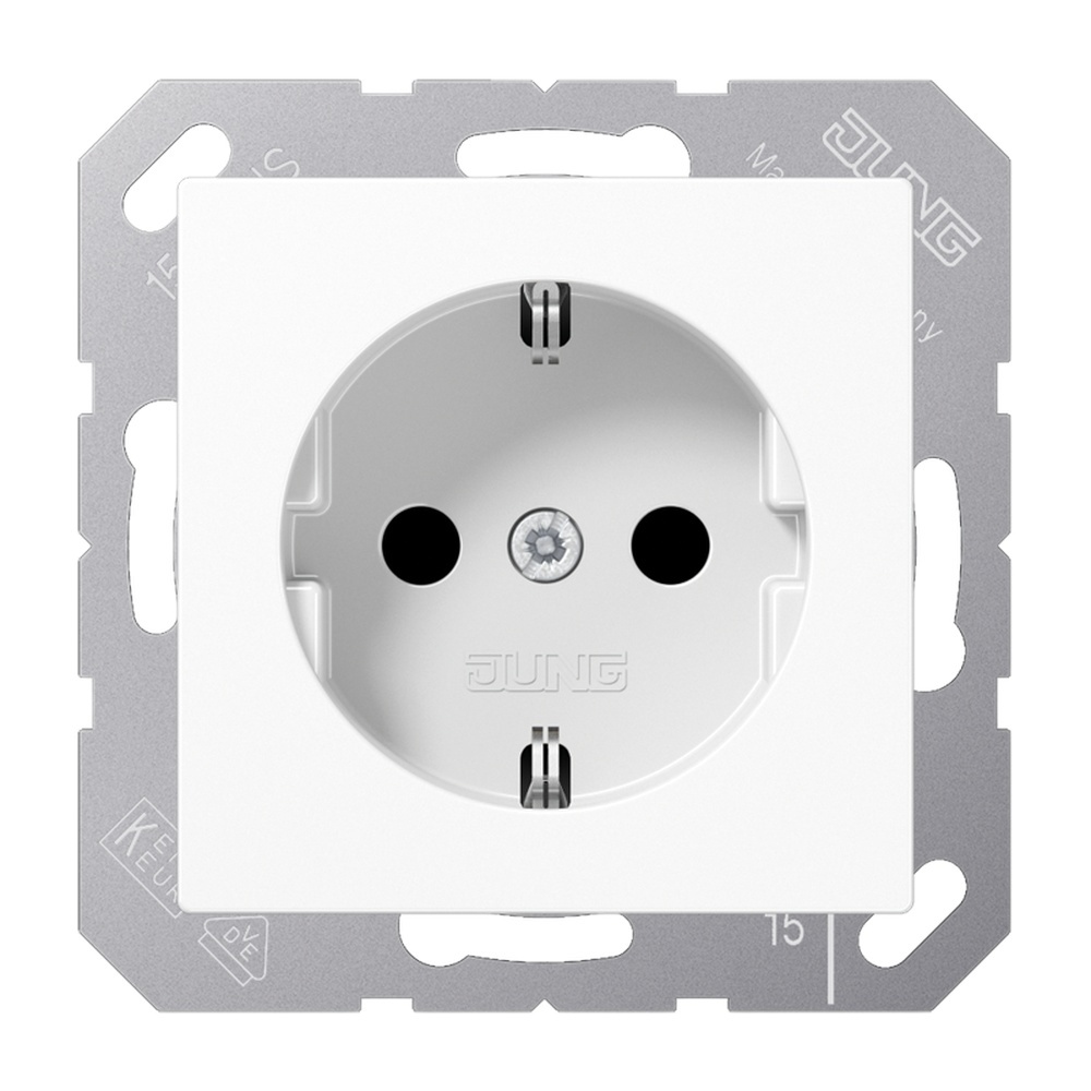 Jung SCHUKO Steckdose A1521WW SCHUKO-Steckdose, 16 A 250 V, Schraubklemmen SCHUKO-Steckdose, 16 A 250 V, mit Schraubklemmen für starre und flexible Leiter bis 2,5 mm² Hersteller Albrecht Jung GmbH & Co. KG EAN Nr. 4011377058125 Warengruppe Jung Serie A