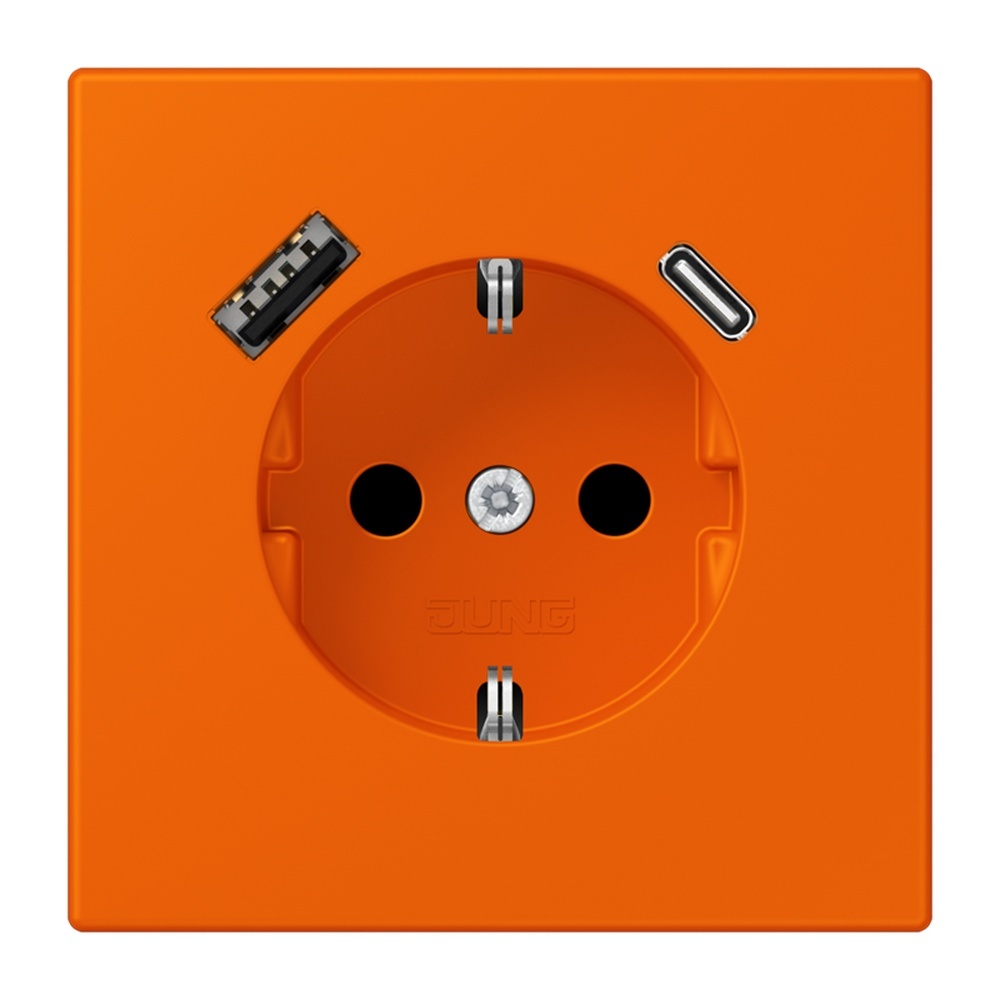 Jung SCHUKO Steckdose LC1520-15CA224 SCHUKO Steckdose 16 A 250 V, mit USB-Ladegerät 1xTyp A + 1xTyp C, SAFETY+, Serie LS, orange (32080) mit integriertem erhöhten Berührungsschutz (Safety Plus) mit 1 USB-Buchse Typ A und 1 USB-Buchse Typ C mit Federklemmen für starre und unbehandelte flexible Leiter bis 2,5 mm2 Verbindungsklemmen nach DIN VDE 0620 Montage in Gerätedose mit Abmessungen nach DIN 49073 Tiefe der Gerätedose (Innenmaß): min. 57 mm Material: Thermoplast lackiert Hersteller Jung EAN Nr. 4011377285347 Warengruppe Jung Les Couleurs Le Corbusier
