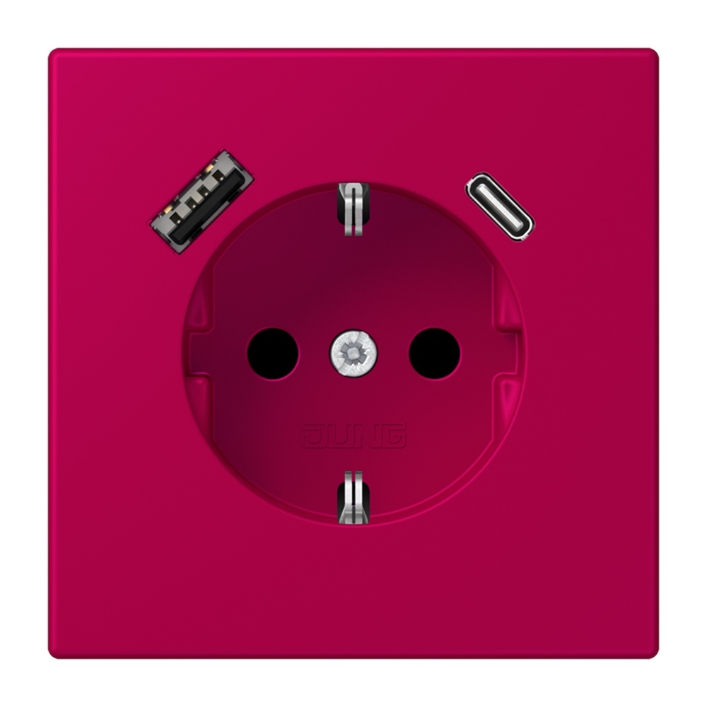Jung SCHUKO Steckdose LC1520-15CA230 SCHUKO Steckdose 16 A 250 V, mit USB-Ladegerät 1xTyp A + 1xTyp C, SAFETY+, Serie LS, rouge rubia (32101) mit integriertem erhöhten Berührungsschutz (Safety Plus) mit 1 USB-Buchse Typ A und 1 USB-Buchse Typ C mit Federklemmen für starre und unbehandelte flexible Leiter bis 2,5 mm2 Verbindungsklemmen nach DIN VDE 0620 Montage in Gerätedose mit Abmessungen nach DIN 49073 Tiefe der Gerätedose (Innenmaß): min. 57 mm Material: Thermoplast lackiert Hersteller Jung EAN Nr. 4011377285408 Warengruppe Jung Les Couleurs Le Corbusier
