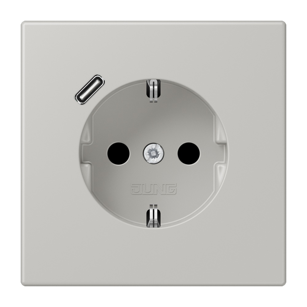 Jung SCHUKO Steckdose LC1520-18C205 SCHUKO Steckdose 16 A 250 V, mit USB-Ladegerät 1xTyp C, SAFETY+, Serie LS, gris clair 31 (32013) mit integriertem erhöhten Berührungsschutz (Safety Plus) mit 1 USB-Buchse Typ C mit Schnellladefunktion mit Federklemmen für starre und unbehandelte flexible Leiter bis 2,5 mm2 Verbindungsklemmen nach DIN VDE 0620 Montage in Gerätedose mit Abmessungen nach DIN 49073 Tiefe der Gerätedose (Innenmaß): min. 57 mm Material: Thermoplast lackiert Hersteller Jung EAN Nr. 4011377272491 Warengruppe Jung Les Couleurs Le Corbusier