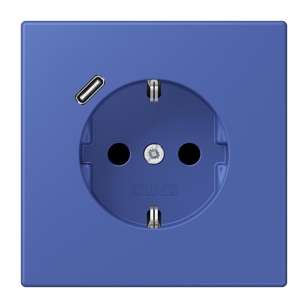 Jung SCHUKO Steckdose LC1520-18C206 SCHUKO Steckdose 16 A 250 V, mit USB-Ladegerät 1xTyp C, SAFETY+, Serie LS, bleu outremer 31 (32020) mit integriertem erhöhten Berührungsschutz (Safety Plus) mit 1 USB-Buchse Typ C mit Schnellladefunktion mit Federklemmen für starre und unbehandelte flexible Leiter bis 2,5 mm2 Verbindungsklemmen nach DIN VDE 0620 Montage in Gerätedose mit Abmessungen nach DIN 49073 Tiefe der Gerätedose (Innenmaß): min. 57 mm Material: Thermoplast lackiert Hersteller Jung EAN Nr. 4011377272514 Warengruppe Jung Les Couleurs Le Corbusier