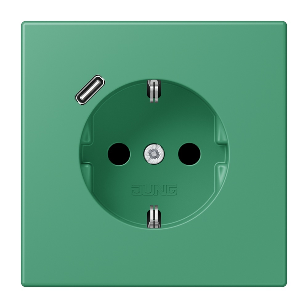 Jung SCHUKO Steckdose LC1520-18C250 SCHUKO Steckdose 16 A 250 V, mit USB-Ladegerät 1xTyp C, SAFETY+, Serie LS, vert 59 (4320G) mit integriertem erhöhten Berührungsschutz (Safety Plus) mit 1 USB-Buchse Typ C mit Schnellladefunktion mit Federklemmen für starre und unbehandelte flexible Leiter bis 2,5 mm2 Verbindungsklemmen nach DIN VDE 0620 Montage in Gerätedose mit Abmessungen nach DIN 49073 Tiefe der Gerätedose (Innenmaß): min. 57 mm Material: Thermoplast lackiert Hersteller Jung EAN Nr. 4011377272972 Warengruppe Jung Les Couleurs Le Corbusier
