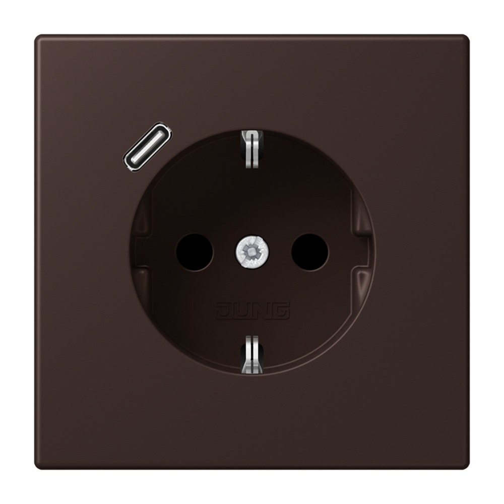 Jung SCHUKO Steckdose LC1520-18C252 SCHUKO Steckdose 16 A 250 V, mit USB-Ladegerät 1xTyp C, SAFETY+, Serie LS, terre d‘ombre brûlée 59 (4320J) mit integriertem erhöhten Berührungsschutz (Safety Plus) mit 1 USB-Buchse Typ C mit Schnellladefunktion mit Federklemmen für starre und unbehandelte flexible Leiter bis 2,5 mm2 Verbindungsklemmen nach DIN VDE 0620 Montage in Gerätedose mit Abmessungen nach DIN 49073 Tiefe der Gerätedose (Innenmaß): min. 57 mm Material: Thermoplast lackiert Hersteller Jung EAN Nr. 4011377272996 Warengruppe Jung Les Couleurs Le Corbusier