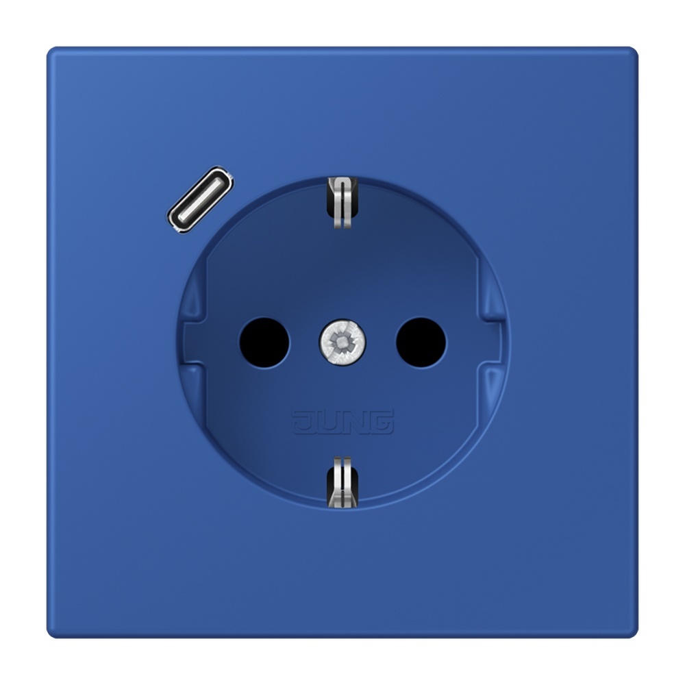 Jung SCHUKO Steckdose LC1520-18C253 SCHUKO Steckdose 16 A 250 V, mit USB-Ladegerät 1xTyp C, SAFETY+, Serie LS, bleu outremer 59 (4320K) mit integriertem erhöhten Berührungsschutz (Safety Plus) mit 1 USB-Buchse Typ C mit Schnellladefunktion mit Federklemmen für starre und unbehandelte flexible Leiter bis 2,5 mm2 Verbindungsklemmen nach DIN VDE 0620 Montage in Gerätedose mit Abmessungen nach DIN 49073 Tiefe der Gerätedose (Innenmaß): min. 57 mm Material: Thermoplast lackiert Hersteller Jung EAN Nr. 4011377273016 Warengruppe Jung Les Couleurs Le Corbusier