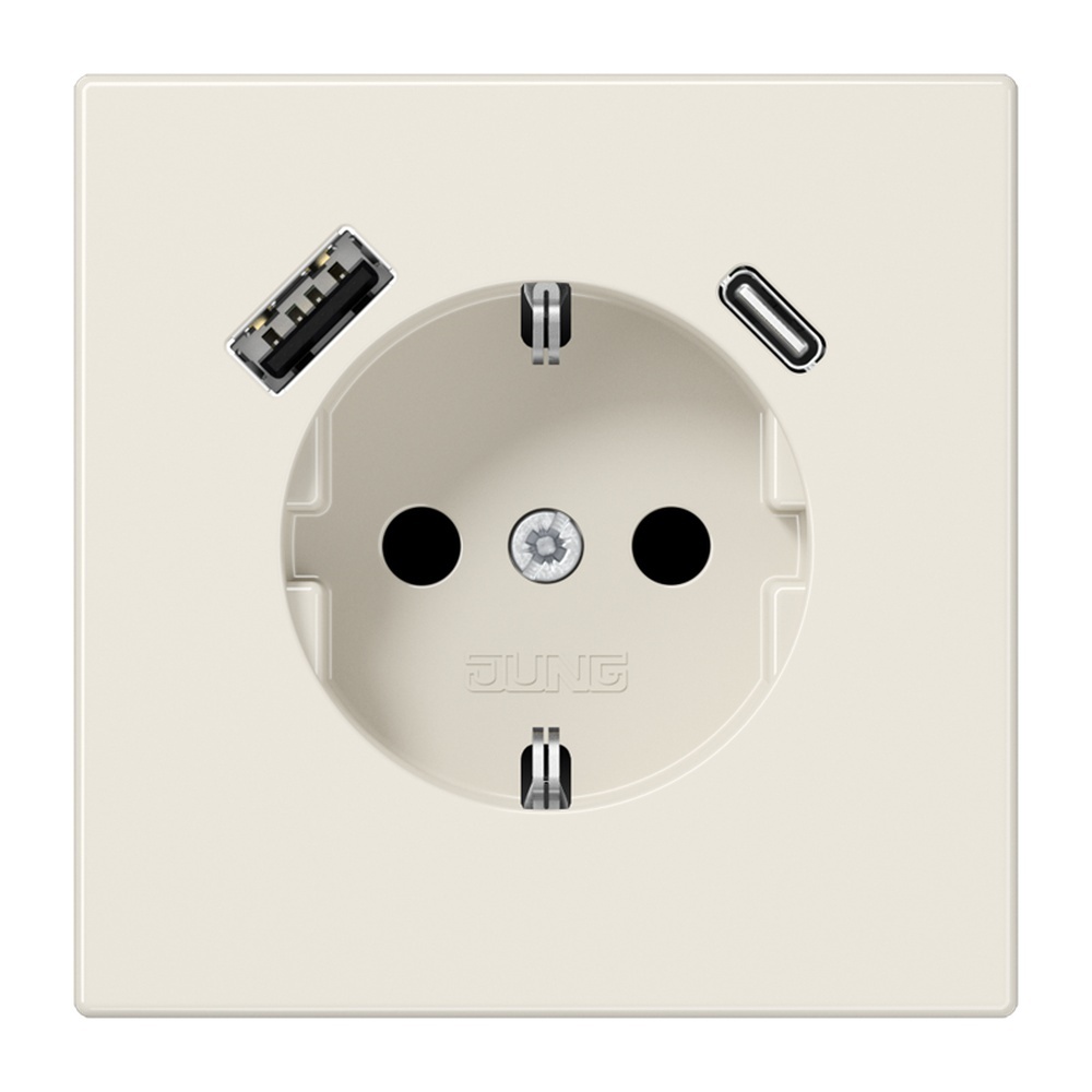 Jung SCHUKO Steckdose LS1520-15CA SCHUKO Steckdose mit 1 USB-Buchse Typ A und 1 USB-Buchse Typ C, Berührungsschutz, Serie LS, weiß mit integriertem erhöhten Berührungsschutz mit 1 USB-Buchse Typ A und 1 USB-Buchse Typ C mit Federklemmen für starre Leiter bis 2,5 mm2 Verbindungsklemmen nach DIN VDE 0620 Montage in Gerätedose nach DIN 49073 Montagehinweis tiefe Dose (min. 60 mm) verwenden Material Thermoplast Hersteller Albrecht Jung GmbH & Co. KG EAN Nr. 4011377184633 Warengruppe Jung Serie LS