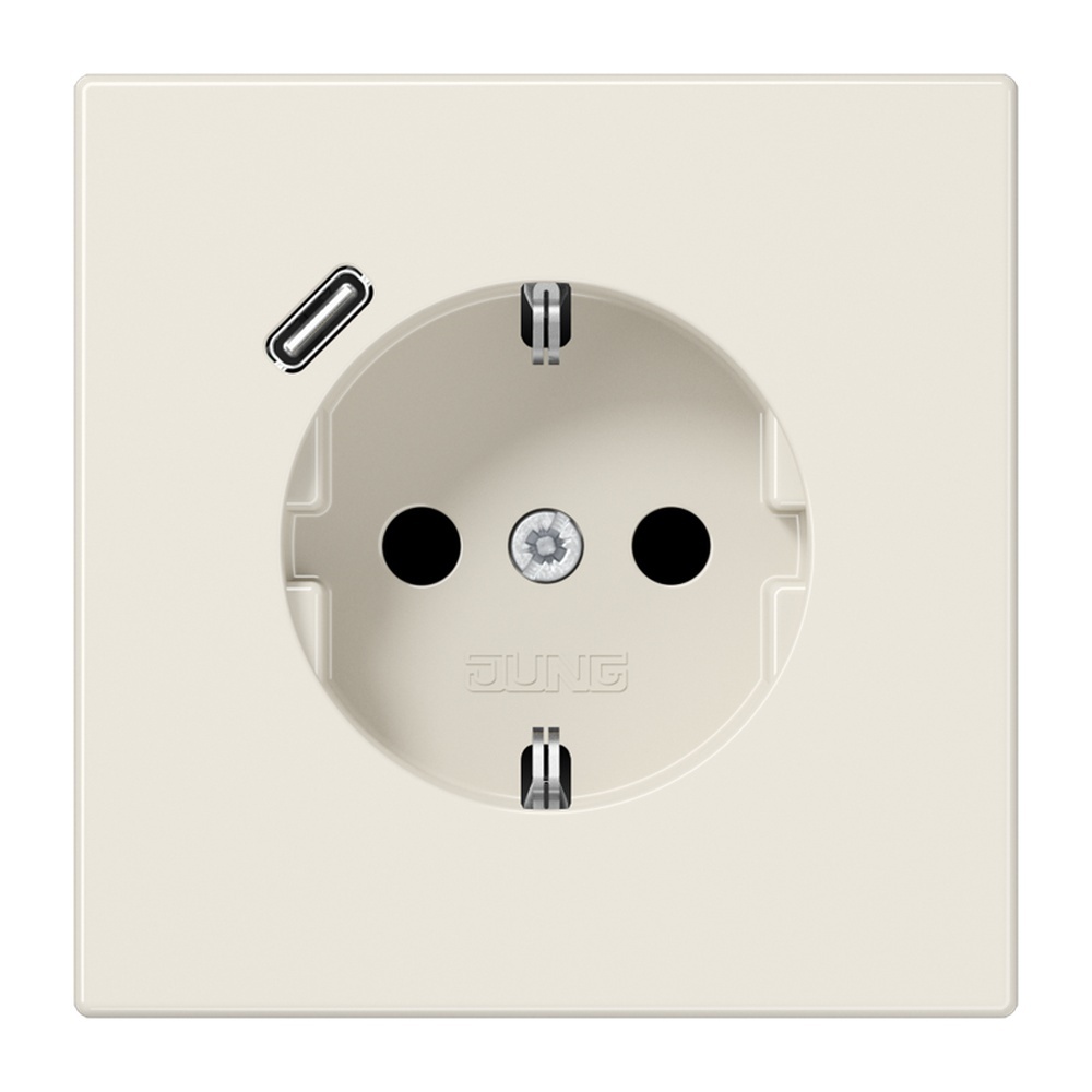 Jung SCHUKO Steckdose LS1520-18C SCHUKO Steckdose mit 1 USB-Buchse Typ C, Berührungsschutz, Serie LS, weiß mit integriertem erhöhten Berührungsschutz mit 1 USB-Buchse Typ C mit Schnellladefunktion mit Federklemmen für starre Leiter bis 2,5 mm2 Verbindungsklemmen nach DIN VDE 0620 Montage in Gerätedose nach DIN 49073 Montagehinweis tiefe Dose (min. 60 mm) verwenden Material Thermoplast Hersteller Albrecht Jung GmbH & Co. KG EAN Nr. 4011377184510 Warengruppe Jung Serie LS