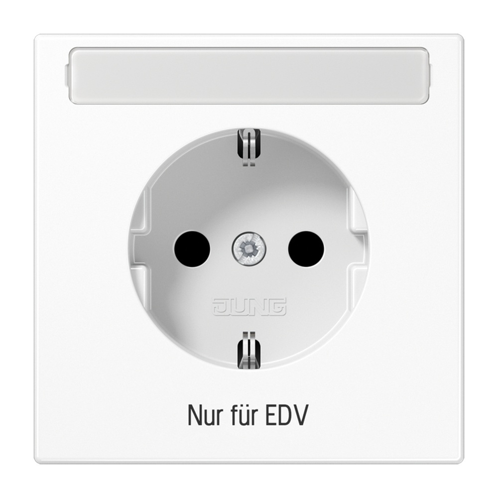 Jung SCHUKO Steckdose LS1520NAEDVWW SCHUKO-Steckdose, 16 A 250 V, Beschriftungsfeld, Aufdruck Nur für EDV SCHUKO-Steckdose, 16 A 250 V, mit Beschriftungsfeld, mit Aufdruck Nur für EDV, mit Federklemmen für starre Leiter bis 2,5 mm² Hersteller Albrecht Jung GmbH & Co. KG EAN Nr. 4011377068414 Warengruppe Jung Serie LS