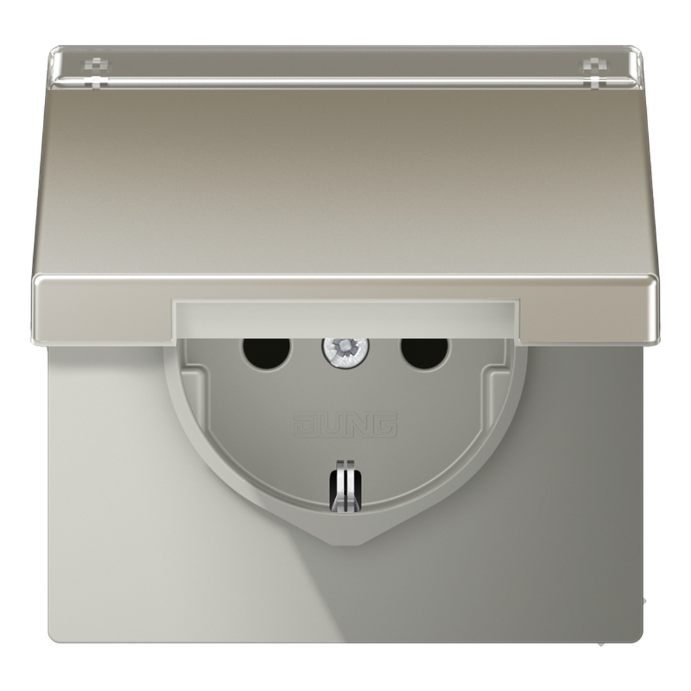 Jung Schutzkontakt Steckdose ES 1520 NAKL SCHUKO-Steckdose, 16 A 250 V ~, mit Klappdeckel mit Rückstellfeder und Schriftfeld 12 x 55 mm, mit Federklemmen für starre Leiter bis 2,5 mm² Hersteller Albrecht Jung GmbH & Co. KG Typ ES1520NAKL EAN Nr. 4011377066946 Warengruppe Jung Serie LS