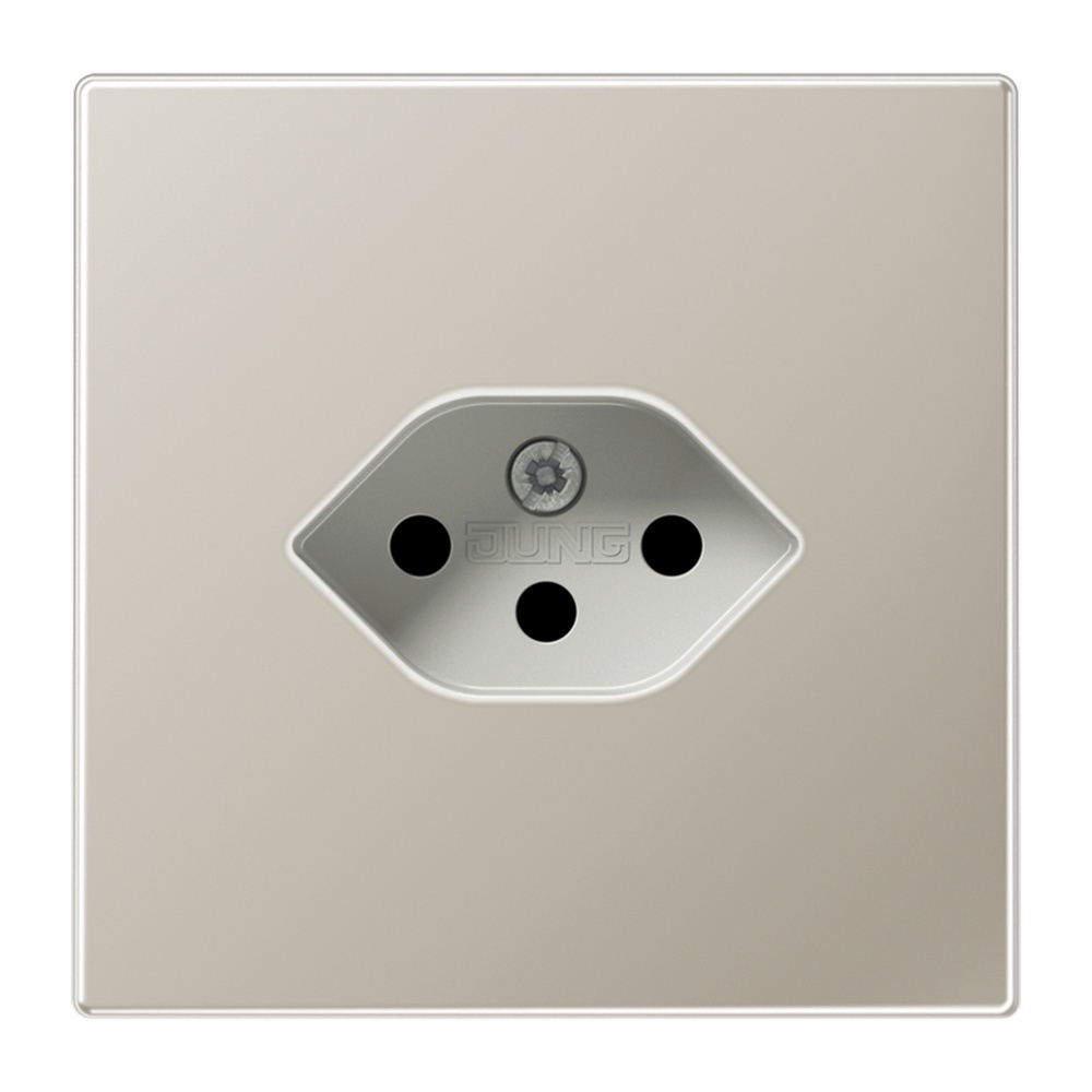 Jung SEV Steckdose ES 1520-13 SEV Steckdose, 10 A, 250 V ~, L, N und PE, mit Tragring, Schraubbefestigung, Schweizer Norm, Typ 13, mit Federklemmen für starre Leiter bis 2,5 mm², für Einbau in Gerätedose nach DIN 49 073 Hersteller Albrecht Jung GmbH & Co. KG Typ ES1520-13SEV EAN Nr. 4011377084933 Warengruppe Jung Serie LS