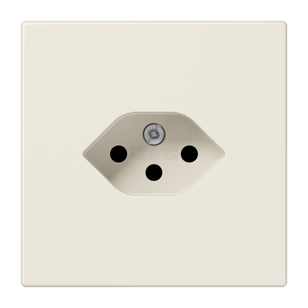 Jung SEV Steckdose LS 1520-13 SEV Steckdose, 10 A, 250 V ~, L, N und PE, mit Tragring, Schraubbefestigung, Schweizer Norm, Typ 13, mit Federklemmen für starre Leiter bis 2,5 mm², für Einbau in Gerätedose nach DIN 49 073 Hersteller Albrecht Jung GmbH & Co. KG Typ LS1520-13SEV EAN Nr. 4011377084889 Warengruppe Jung Serie LS