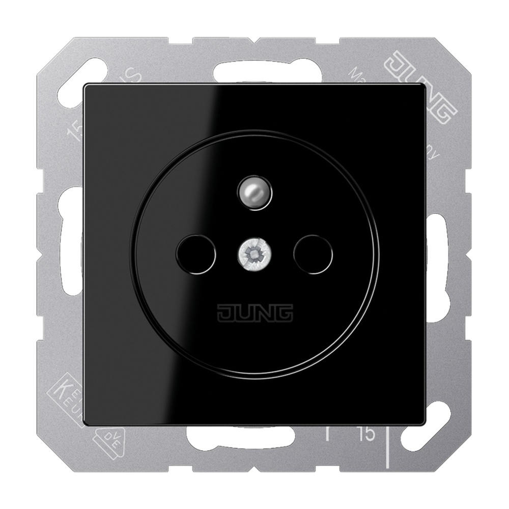 Jung Steckdose A 1520 FBFKI SW Steckdose, 16 A, 250 V ~, 2-polig und Erdungsstift, mit integriertem erhöhten Berührungsschutz, bruchsicher, französisch-belgisches System Hersteller Albrecht Jung GmbH & Co. KG Typ A1520FBFKISW EAN Nr. 4011377147225 Warengruppe Jung Serie A