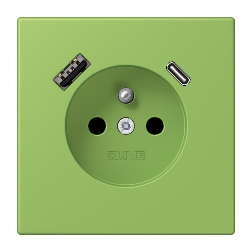 Jung Steckdose LC1520F-15CA220 Steckdose, französisch/belgisches System 16 A 250 V ~, mit USB-Ladegerät 1xTyp A + 1xTyp C, SAFETY+, Serie LS, vert 31 (32051) 2-polig mit Erdungsstift, 16 A 250 V ~CEE 7/5mit integriertem erhöhten Berührungsschutz (Safety Plus)mit 1 USB-Buchse Typ A und 1 USB-Buchse Typ Cmit Federklemmen für starre und unbehandelte flexible Leiter bis 2,5 mm2Verbindungsklemmen nach DIN VDE 0620Montage in Gerätedose mit Abmessungen nach DIN 49073Tiefe der Gerätedose (Innenmaß): min. 57 mmMaterial: Thermoplast lackiert Hersteller Jung Nr. LC1520F-15CA220 EAN Nr. 4011377342316 Warengruppe Jung Serie LS