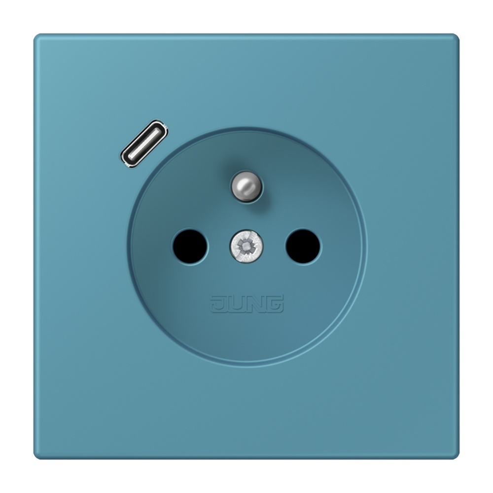 Jung Steckdose LC1520F-18C212 Steckdose, französisch/belgisches System 16 A 250 V ~, mit USB-Ladegerät 1xTyp C, SAFETY+, Serie LS, céruléen vif (32031) 2-polig mit Erdungsstift, 16 A 250 V ~CEE 7/5mit integriertem erhöhten Berührungsschutz (Safety Plus)mit 1 USB-Buchse Typ Cmit Schnellladefunktion (JUNG Quick Charge )mit Federklemmen für starre und unbehandelte flexible Leiter bis 2,5 mm2Verbindungsklemmen nach DIN VDE 0620Montage in Gerätedose mit Abmessungen nach DIN 49073Tiefe der Gerätedose (Innenmaß): min. 57 mmMaterial: Thermoplast lackiert Hersteller Jung Nr. LC1520F-18C212 EAN Nr. 4011377341548 Warengruppe Jung Serie LS