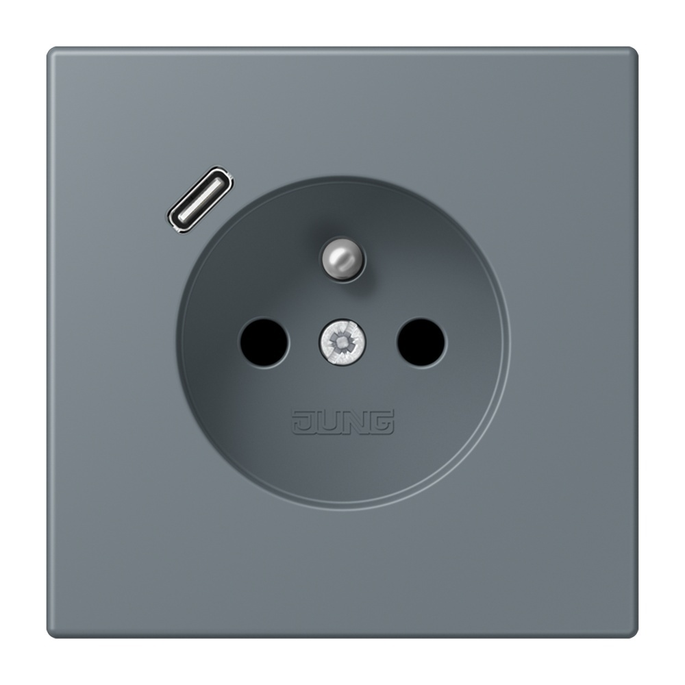 Jung Steckdose LC1520F-18C251 Steckdose, französisch/belgisches System 16 A 250 V ~, mit USB-Ladegerät 1xTyp C, SAFETY+, Serie LS, gris 59 (4320H) 2-polig mit Erdungsstift, 16 A 250 V ~CEE 7/5mit integriertem erhöhten Berührungsschutz (Safety Plus)mit 1 USB-Buchse Typ Cmit Schnellladefunktion (JUNG Quick Charge )mit Federklemmen für starre und unbehandelte flexible Leiter bis 2,5 mm2Verbindungsklemmen nach DIN VDE 0620Montage in Gerätedose mit Abmessungen nach DIN 49073Tiefe der Gerätedose (Innenmaß): min. 57 mmMaterial: Thermoplast lackiert Hersteller Jung Nr. LC1520F-18C251 EAN Nr. 4011377341999 Warengruppe Jung Serie LS