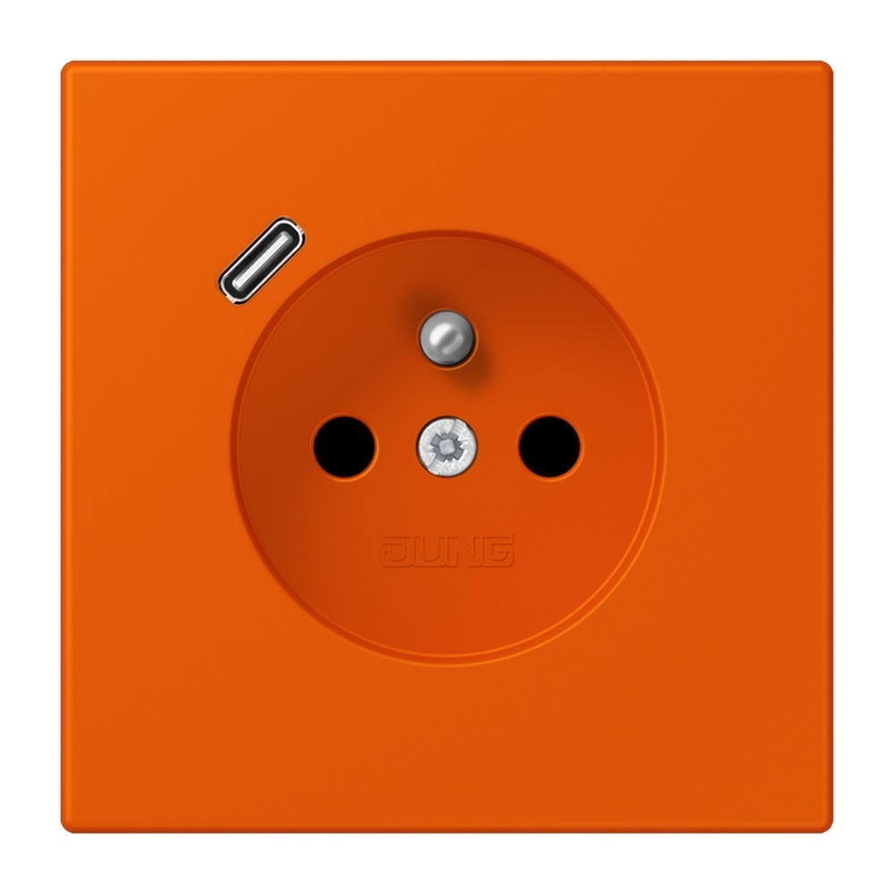 Jung Steckdose LC1520F-18C260 Steckdose, französisch/belgisches System 16 A 250 V ~, mit USB-Ladegerät 1xTyp C, SAFETY+, Serie LS, orange vif (4320S) 2-polig mit Erdungsstift, 16 A 250 V ~CEE 7/5mit integriertem erhöhten Berührungsschutz (Safety Plus)mit 1 USB-Buchse Typ Cmit Schnellladefunktion (JUNG Quick Charge )mit Federklemmen für starre und unbehandelte flexible Leiter bis 2,5 mm2Verbindungsklemmen nach DIN VDE 0620Montage in Gerätedose mit Abmessungen nach DIN 49073Tiefe der Gerätedose (Innenmaß): min. 57 mmMaterial: Thermoplast lackiert Hersteller Jung Nr. LC1520F-18C260 EAN Nr. 4011377342088 Warengruppe Jung Serie LS