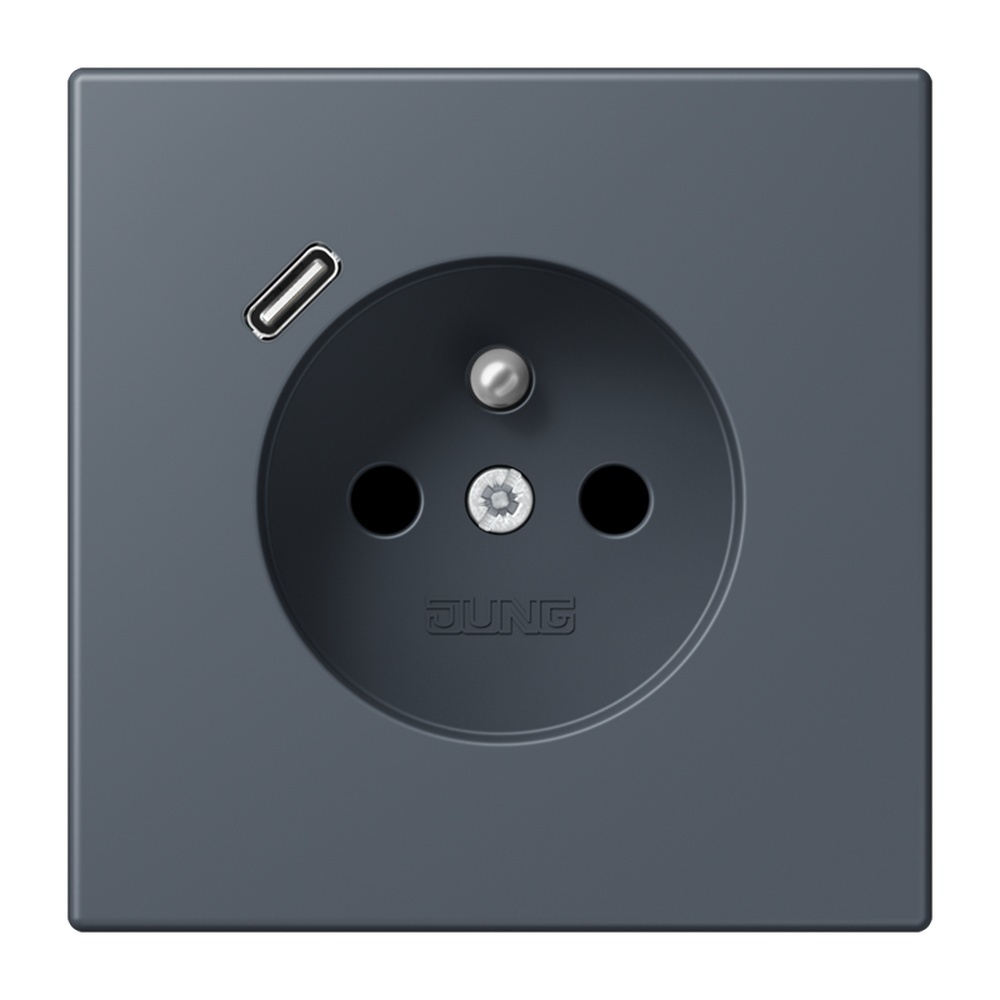 Jung Steckdose LC1520F-18C262 Steckdose, französisch/belgisches System 16 A 250 V ~, mit USB-Ladegerät 1xTyp C, SAFETY+, Serie LS, gris foncé 59 (4320U) 2-polig mit Erdungsstift, 16 A 250 V ~CEE 7/5mit integriertem erhöhten Berührungsschutz (Safety Plus)mit 1 USB-Buchse Typ Cmit Schnellladefunktion (JUNG Quick Charge )mit Federklemmen für starre und unbehandelte flexible Leiter bis 2,5 mm2Verbindungsklemmen nach DIN VDE 0620Montage in Gerätedose mit Abmessungen nach DIN 49073Tiefe der Gerätedose (Innenmaß): min. 57 mmMaterial: Thermoplast lackiert Hersteller Jung Nr. LC1520F-18C262 EAN Nr. 4011377342101 Warengruppe Jung Serie LS