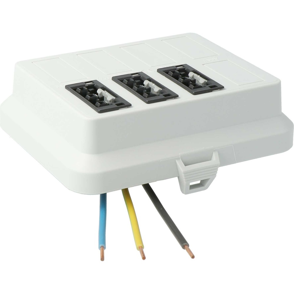 Kaiser Steckbar Frontteil AK2 AT7705 Steckbar Frontteil AK2, WAGO WINSTA MIDI, in:3pol H07V-U, out:3x 3pol sw L1, 125x100x42 mm, lichtgrau Steckbar Frontteil AK2, WAGO WINSTA MIDI, in: 3pol H07V-U, out:3x 3pol sw L1, 125x100x42 mm, lichtgrau Hersteller Kaiser Schalterdosen EAN Nr. 8712259325620 Warengruppe Kaiser Unterputz