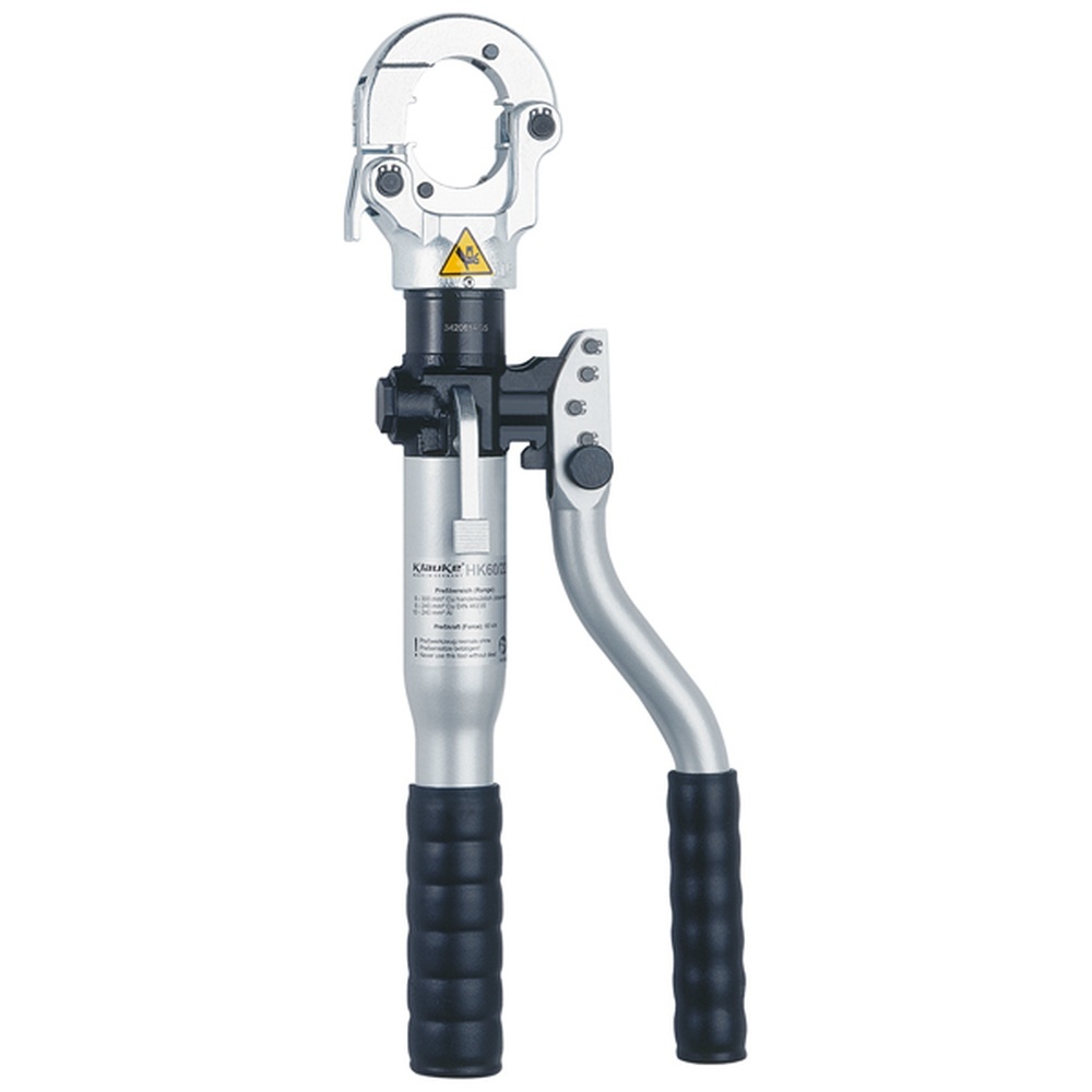 Klauke Presswerkzeug HK6022 Presswerkzeug handhydraulisch, 6-300 mm² Schlanker Presskopf-ideal bei kritischen Platzverhältnissen. Für auswechselbare Einsätze der Serie 22, Schmalpressung. Geschlossener Presskopf, aufklappbar, drehbar. Geringes Gewicht durch hochwertiges Aluminiumgehäuse. 2-Stufen-Hydraulik mit schnellem Vorlauf und Krafthub. Automatischer Rücklauf nach vollendeter Pressung. Manueller Rücklauf bei Bedarf. Umweltfreundliches Hydrauliköl, biologisch schnell abbaubar. Lieferumfang: Stahlblechkasten für HK 60/22 bzw. HK 60/22 W mit Platz für 17 Paar Presseinsätze (MK6022). Nr. HK6022 EAN Nr. 4012078165587 Warengruppe Klauke Presswerkzeug