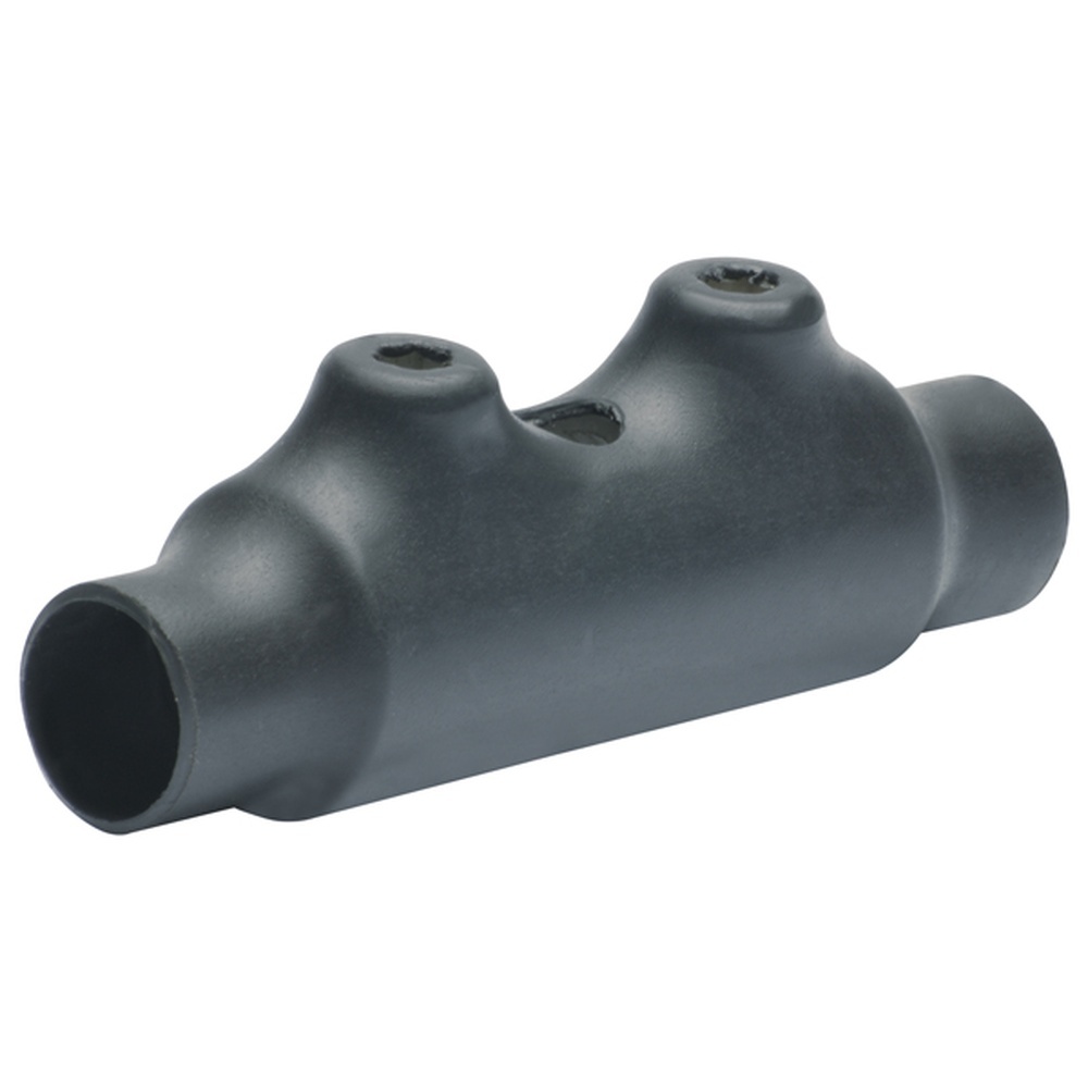 Klauke Schraubverbinder SV405V Schraubverbinder isol., 16-35 mm² rm/sm, 16-50 mm² rm(v)/re/se, verzinnt Ideal zum Verbinden gleicher und ungleicher Leiterquerschnitte. Zum Verbinden unterschiedlicher Leitertypen und Materialien nach VDE 0295 Klasse 1 und 2 und Al-Leiter nach DIN 48201 Teil 5. Mit Sichtloch zur Kabeleinschubkontrolle (unterschiedliche Materialien dürfen sich nicht berühren). Spezielles Rillenprofil im Innern zur Zerstörung der Oxidationsschicht beim Verschrauben. Klemmkörper isoliert. Ausführung mit 2 Schrauben. ohne Mittelsteg. Klemmkörper: hochfeste Aluminiumlegierung. Nr. SV405V EAN Nr. 4012078441025 Warengruppe Klauke Schraubverbinder