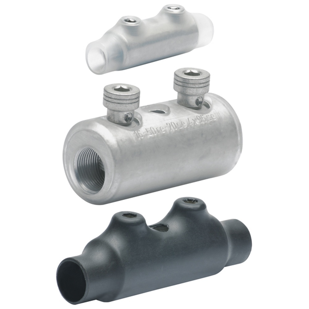 Klauke Schraubverbinder SV410 Schraubverbinder isol., 25-95 mm² rm/sm, 25-95 mm² rm(v)/re/se, blank Ideal zum Verbinden gleicher und ungleicher Leiterquerschnitte. Zum Verbinden unterschiedlicher Leitertypen und Materialien nach VDE 0295 Klasse 1 und 2 und Al-Leiter nach DIN 48201 Teil 5. Mit Sichtloch zur Kabeleinschubkontrolle (unterschiedliche Materialien dürfen sich nicht berühren). Spezielles Rillenprofil im Innern zur Zerstörung der Oxidationsschicht beim Verschrauben. Klemmkörper isoliert. Ausführung mit 2 Schrauben. ohne Mittelsteg. Klemmkörper: hochfeste Aluminiumlegierung. Nr. SV410 EAN Nr. 4012078441032 Warengruppe Klauke Schraubverbinder