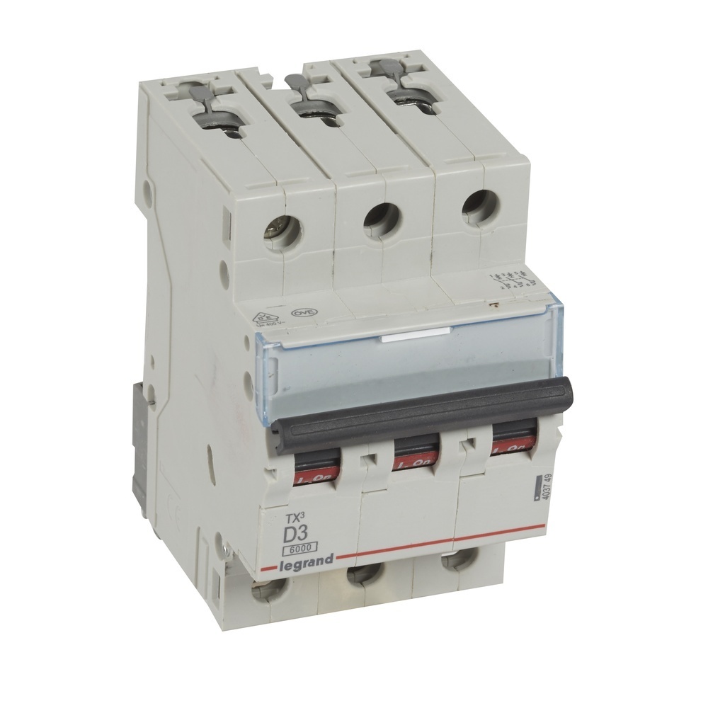 Legrand Leitungsschutzschalter 403749 Die D-Kennlinie ist für den Leitungsschutz in Kraftstromkreisen mit sehr hohen Einschaltströmen vorzusehen. Nach EN 60898-1, VDE 0641-11, EN 60947-2, Technische Daten Bemessungsspannung 400 V, 50 60 Hz, Bemessungsschaltvermögen 6 kA nach EN 60898-1, Befestigung auf Hutprofilschiene EN 60715 durch rastende Schnellbefestigung, klare Information vorne auf jedem Gerät, eindeutige Schaltstellungsanzeige rot grün am Schalthebel verriegelbar, mit Beschriftungsfenster, mit Untersteckschutz zum sicheren Einführen des Leiters in Fahrstuhlklemme, Anbau von Hilfsgeräten möglich. TX3 LS D3A 3P 6KA 3M Hersteller Legrand Installation EAN Nr. 3414970391117 Warengruppe Legrand FI/LS Schalter