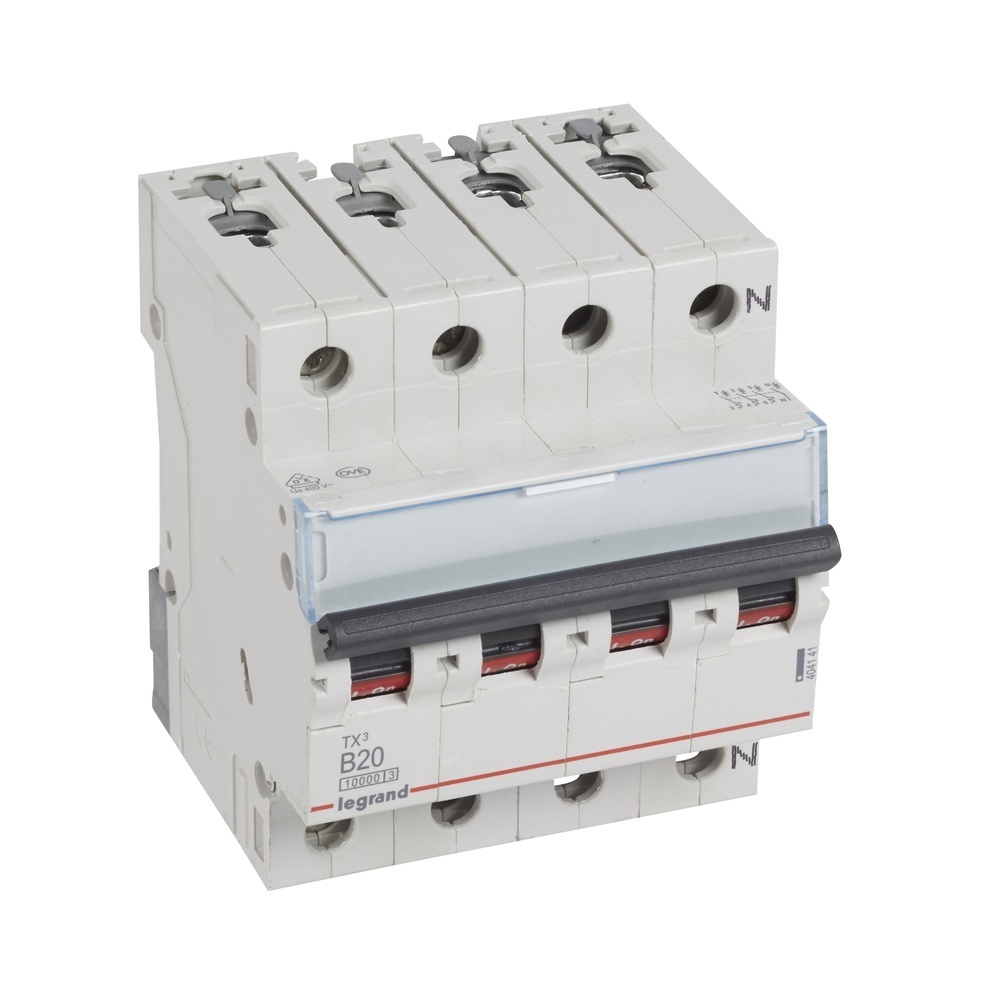 Legrand Leitungsschutzschalter 404141 Die B-Kennlinie ist vornehmlich für den Leitungsschutz in Licht- und Steckdosen-Stromkreisen bestimmt. Nach EN 60898-1, VDE 0641-11, EN 60947-2, Technische Daten Bemessungsspannung 400 V, 50 60 Hz, Bemessungsschaltvermögen 10 kA nach EN 60898-1, Energiebegrenzungsklasse 3, Befestigung auf Hutprofilschiene EN 60715 durch rastende Schnellbefestigung, klare Information vorne auf jedem Gerät, eindeutige Schaltstellungsanzeige rot grün am Schalthebel verriegelbar, mit Beschriftungsfenster, mit Untersteckschutz zum sicheren Einführen des Leiters in Fahrstuhlklemme, Anbau von Hilfsgeräten möglich. TX3 LS B20A 3P N 10KA 4M Hersteller Legrand Installation EAN Nr. 3414970392992 Warengruppe Legrand FI/LS Schalter