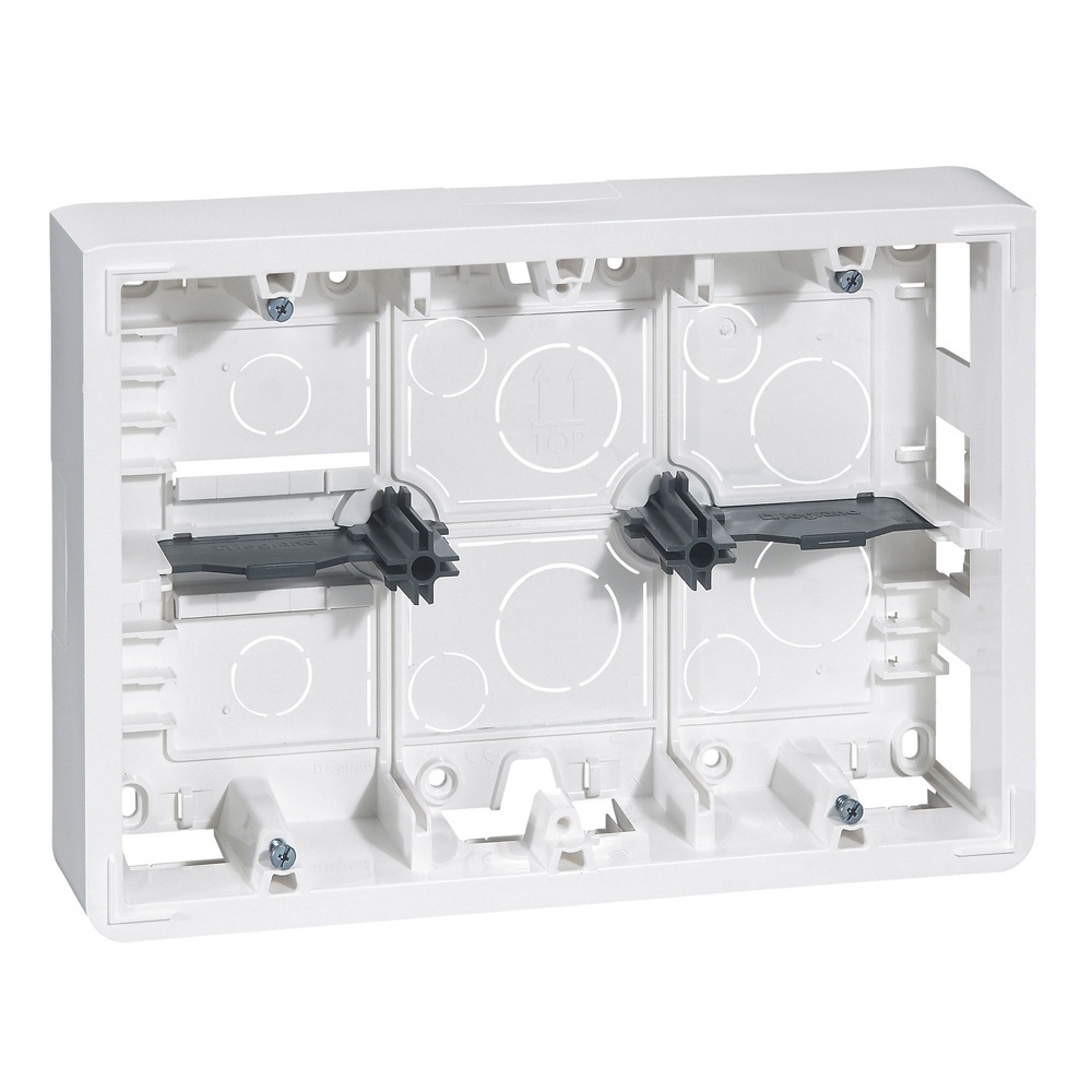Legrand MSC AP Gehäuse 080276 zur Verwendung mit Tragring Best.Nr. 0802 66, ausgestattet mit entfernbarer Kabeleinführung 40x20 mm, Tiefe 46 mm. Farbe weiß MSC AP-Gehäuse 2x3x2mod ws Hersteller Legrand Schalterprogramme EAN Nr. 3245060802769 Warengruppe Legrand Mosaic