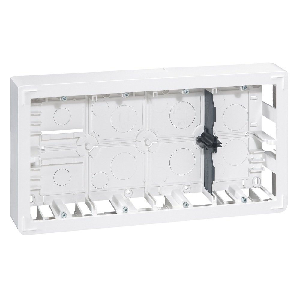 Legrand MSC AP Gehäuse 080278 zur Verwendung mit Tragring Best.Nr. 0802 68, mit entfernbarer Kabeleinführung 40x20 mm, Tiefe 46 mm. Farbe weiß MSC AP-Gehäuse 2x10mod ws Hersteller Legrand Schalterprogramme EAN Nr. 3245060802783 Warengruppe Legrand Mosaic