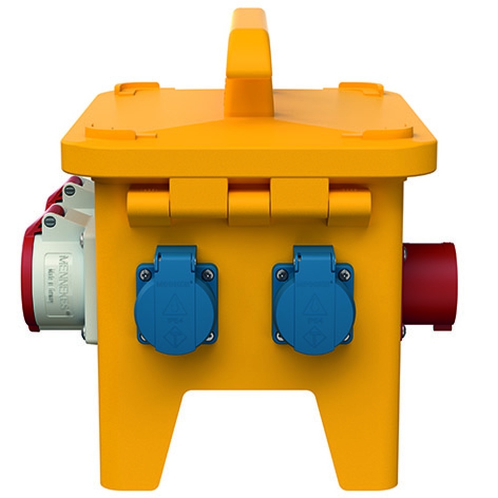 Mennekes Steckdosenkombination 70410 Tragbare MENNEKES EverGum Verteiler sind die Kraftpakete für den mobilen Einsatz in Industrie, Handwerk und Gewerbe. Die entscheidenden Vorteile Hohe Formstabilität und -genauigkeit. Sie können einen kräftigen Stoß vertragen. Das beeinträchtigt weder die äußere Form noch die innere Funktion. Die gute Säure- und Laugenresistenz ermöglicht den Einsatz auch dort wo aggressive Reinigungsmittel anzutreffen sind. Hohe Durchschlags- und Kriechstromfestigkeit Wetter- und alterungsbeständig Ein geschlossenes Gehäuseunterteil mit 77 mm Bodenfreiheit verhindert Wassereintritt. Das Wechseln der Anbausteckdosen ist jederzeit problemlos möglich. LS- und FI-Schalter sind nach dem Öffnen des Deckels sofort zugänglich. Zusätzliche Sicherheit bietet die Möglichkeit ein Vorhängeschloss anzubringen. Ein nicht zu unterschätzender Zusatznutzen platzsparende Lagerung durch Stapelbarkeit. EAN Nr. 4015394160700 Warengruppe Mennekes EverGUM