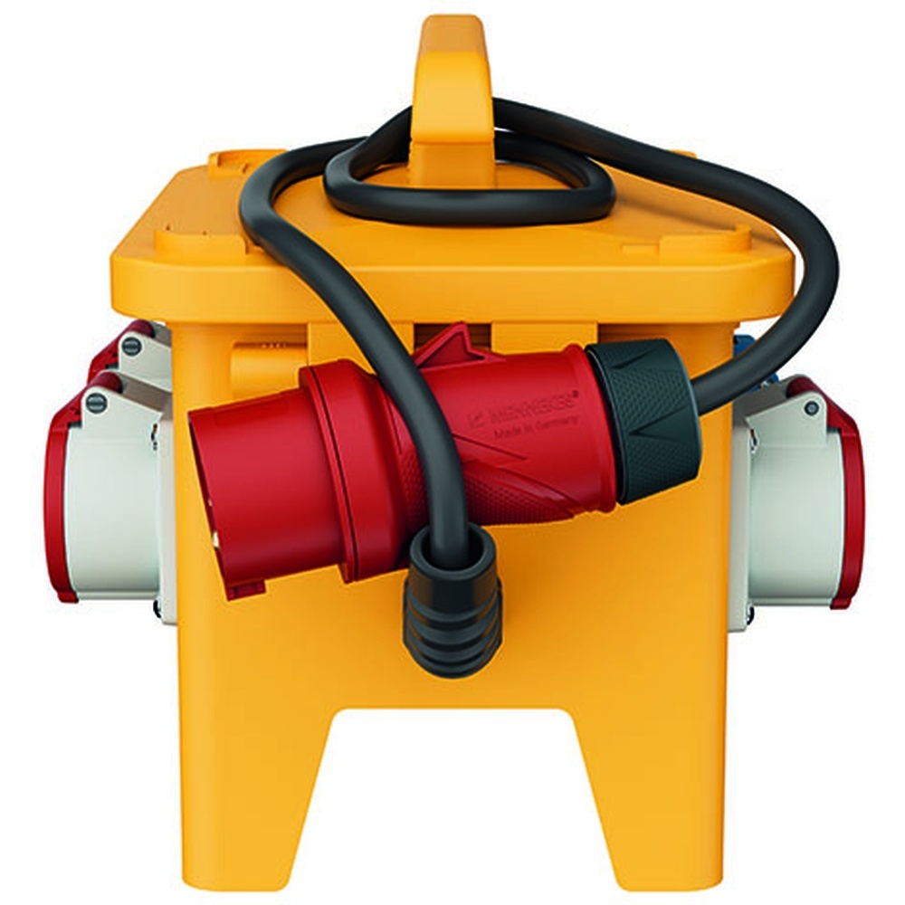Mennekes Steckdosenkombination 70416 Tragbare MENNEKES EverGum Verteiler sind die Kraftpakete für den mobilen Einsatz in Industrie, Handwerk und Gewerbe. Die entscheidenden Vorteile Hohe Formstabilität und -genauigkeit. Sie können einen kräftigen Stoß vertragen. Das beeinträchtigt weder die äußere Form noch die innere Funktion. Die gute Säure- und Laugenresistenz ermöglicht den Einsatz auch dort wo aggressive Reinigungsmittel anzutreffen sind. Hohe Durchschlags- und Kriechstromfestigkeit Wetter- und alterungsbeständig Ein geschlossenes Gehäuseunterteil mit 77 mm Bodenfreiheit verhindert Wassereintritt. Das Wechseln der Anbausteckdosen ist jederzeit problemlos möglich. LS- und FI-Schalter sind nach dem Öffnen des Deckels sofort zugänglich. Zusätzliche Sicherheit bietet die Möglichkeit ein Vorhängeschloss anzubringen. Ein nicht zu unterschätzender Zusatznutzen platzsparende Lagerung durch Stapelbarkeit. EAN Nr. 4015394160755 Warengruppe Mennekes EverGUM