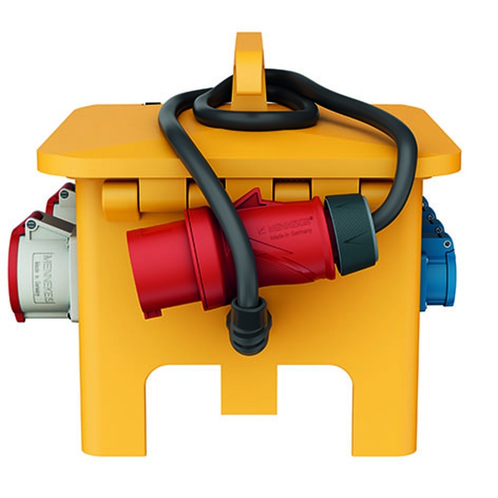 Mennekes Steckdosenkombination 70448 Tragbare MENNEKES EverGum Verteiler sind die Kraftpakete für den mobilen Einsatz in Industrie, Handwerk und Gewerbe. Die entscheidenden Vorteile Hohe Formstabilität und -genauigkeit. Sie können einen kräftigen Stoß vertragen. Das beeinträchtigt weder die äußere Form noch die innere Funktion. Die gute Säure- und Laugenresistenz ermöglicht den Einsatz auch dort wo aggressive Reinigungsmittel anzutreffen sind. Hohe Durchschlags- und Kriechstromfestigkeit Wetter- und alterungsbeständig Ein geschlossenes Gehäuseunterteil mit 77 mm Bodenfreiheit verhindert Wassereintritt. Das Wechseln der Anbausteckdosen ist jederzeit problemlos möglich. LS- und FI-Schalter sind nach dem Öffnen des Deckels sofort zugänglich. Zusätzliche Sicherheit bietet die Möglichkeit ein Vorhängeschloss anzubringen. Ein nicht zu unterschätzender Zusatznutzen platzsparende Lagerung durch Stapelbarkeit. EAN Nr. 4015394144458 Warengruppe Mennekes EverGUM