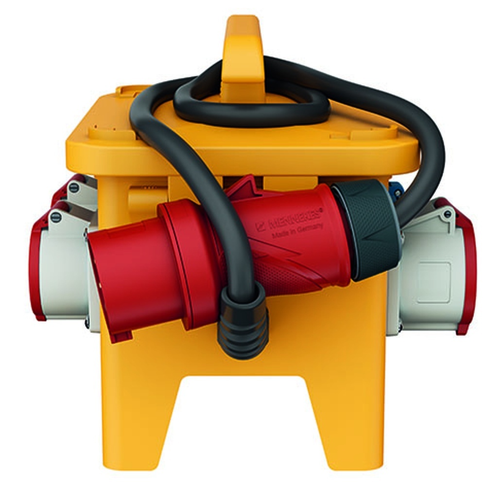 Mennekes Steckdosenkombination 70734 Tragbare MENNEKES EverGum Verteiler sind die Kraftpakete für den mobilen Einsatz in Industrie, Handwerk und Gewerbe. Die entscheidenden Vorteile Hohe Formstabilität und -genauigkeit. Sie können einen kräftigen Stoß vertragen. Das beeinträchtigt weder die äußere Form noch die innere Funktion. Die gute Säure- und Laugenresistenz ermöglicht den Einsatz auch dort wo aggressive Reinigungsmittel anzutreffen sind. Hohe Durchschlags- und Kriechstromfestigkeit Wetter- und alterungsbeständig Ein geschlossenes Gehäuseunterteil mit 77 mm Bodenfreiheit verhindert Wassereintritt. Das Wechseln der Anbausteckdosen ist jederzeit problemlos möglich. LS- und FI-Schalter sind nach dem Öffnen des Deckels sofort zugänglich. Zusätzliche Sicherheit bietet die Möglichkeit ein Vorhängeschloss anzubringen. Ein nicht zu unterschätzender Zusatznutzen platzsparende Lagerung durch Stapelbarkeit. EAN Nr. 4015394160441 Warengruppe Mennekes EverGUM