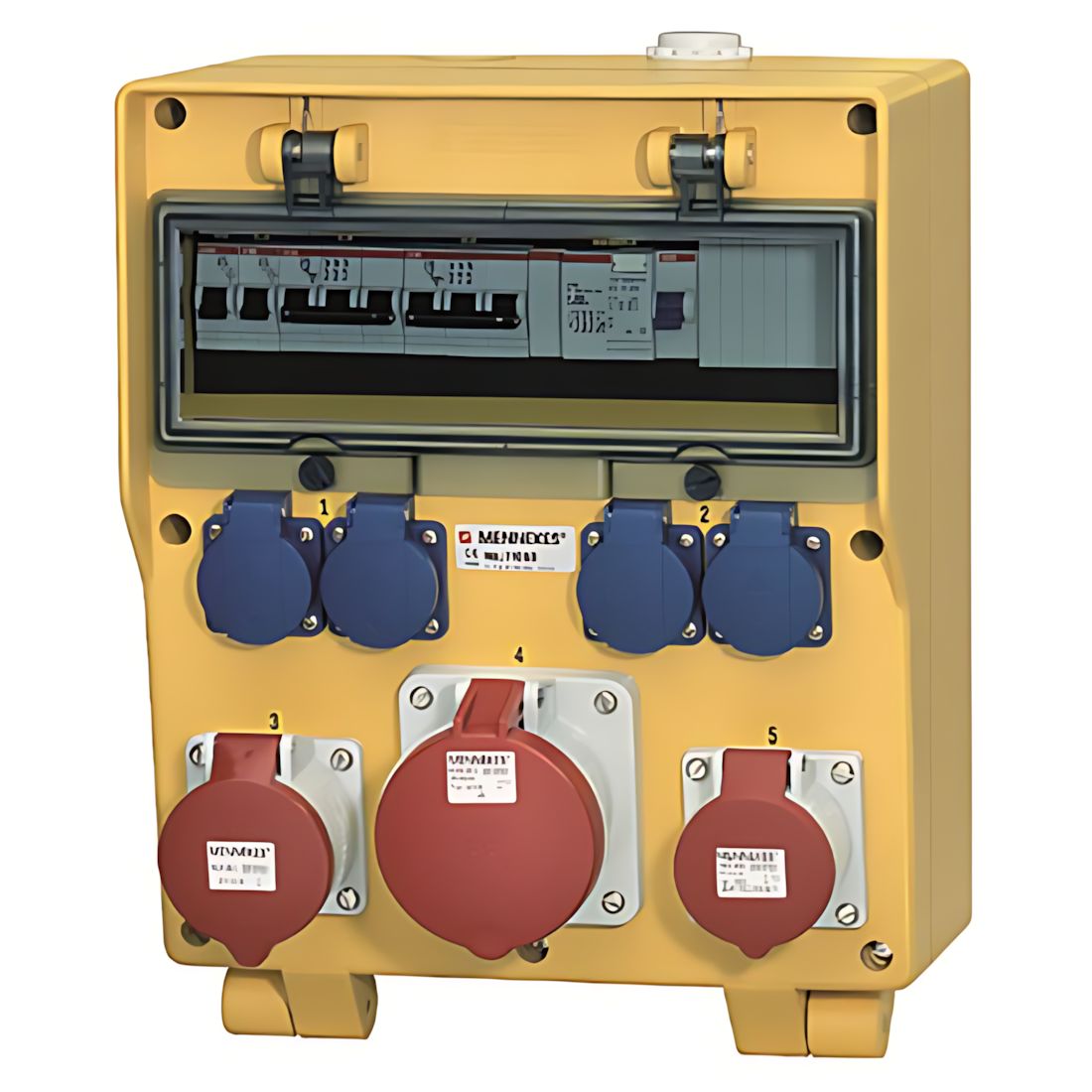 Mennekes Steckdosenkombination 71063 Mit den MENNEKES EverGum®, Wandverteilern bietet MENNEKES ein umfassendes Alternativprogramm für die unterschiedlichsten Einsatzbereiche in Industrie, Handwerk und Gewerbe. Die entscheidenden Vorteile Hohe Formstabilität und -genauigkeit. Sie können einen kräftigen Stoß vertragen. Das beeinträchtigt weder die äußere Form noch die innere Funktion. Die gute Säure- und Laugenresistenz ermöglicht den Einsatz auch dort wo aggressive Reinigungsmittel anzutreffen sind. Hohe Durchschlags- und Kriechstromfestigkeit Wetter- und alterungsbeständig Das Wechseln der Anbausteckdosen ist jederzeit problemlos möglich. Durchdachte Details ermöglichen ein einfaches Handling. So bietet das Programm z.B. einen großen Anschlussraum durch hochgesetzte Tragschienen und bei geöffnetem Gehäuse findet keine Zugbelastung auf die Verdrahtung statt. EAN Nr. 4015394209126 Warengruppe Mennekes EverGUM