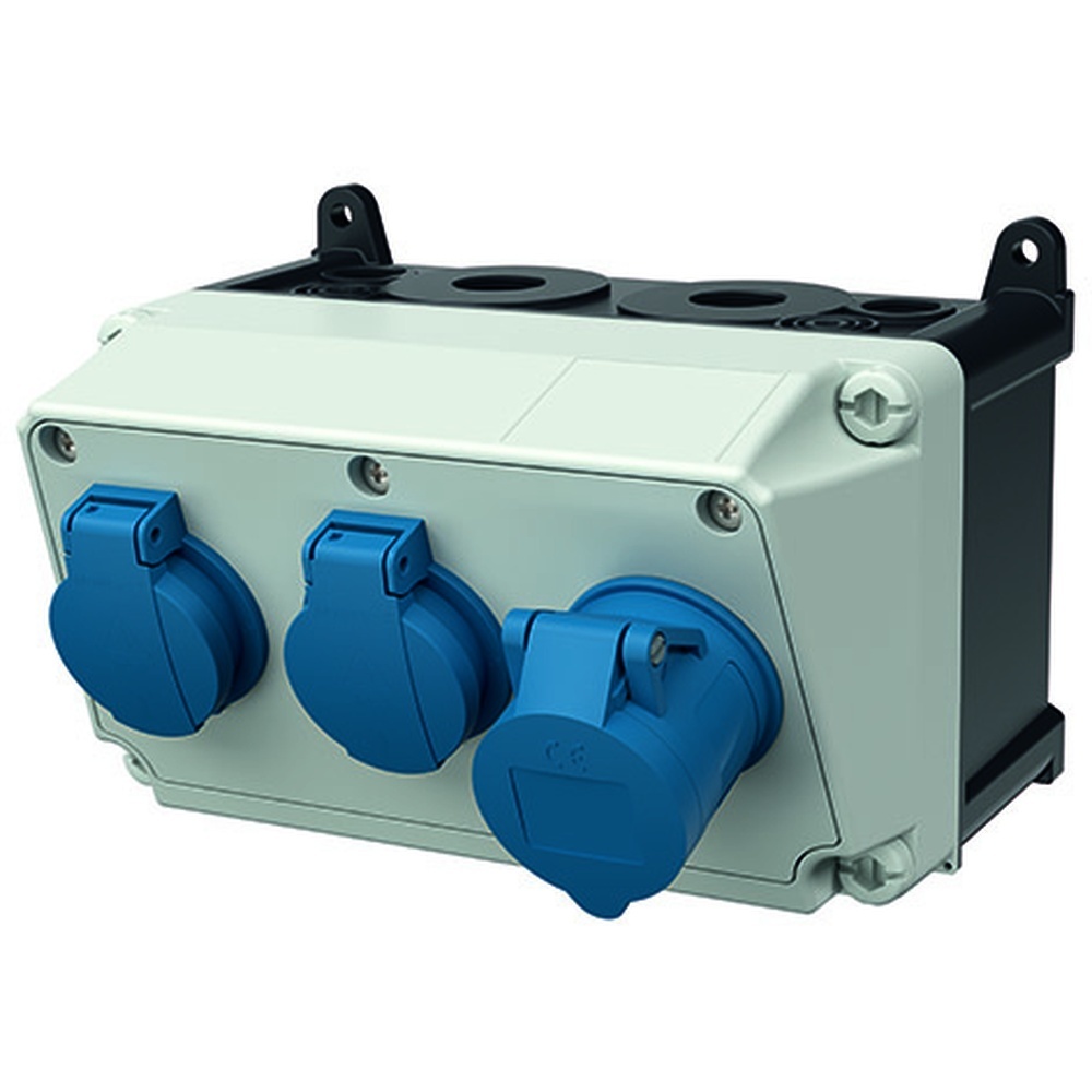 Mennekes Steckdosenkombination 910006 Kombinieren statt einzeln installieren. Viele Einzelsteckdosen mit separater Zuleitung sind teuer, unpraktisch und erhöhen die Brandlast. Mit AMAXX kombinieren Sie clever und sparen dadurch wertvolle Montagezeit. Warum – Nur eine Zuleitung, weniger Bohrlöcher, weniger Kabel- und Rohrschellen und nur ein Gehäuse, dessen Außenbefestigung die Ein-Mann-Montage ermöglicht. Die vorziehbare Hutprofilschiene und der große Anschlussraum erleichtern die Anschlussarbeiten. AMAXX ist anschlussfertig vorverdrahtet und auf elektrische Sicherheit und Qualität nach IEC 61439 geprüft. Weitere Vorteile sind die generell schräge Steckrichtung für leichteres Handling beim Stecken und Ziehen, das transparente Betätigungsfenster für Reiheneinbaugeräte (sofern vorhanden) mit rastender Schließung, mehrere unterschiedliche, vorgeprägte Leitungseinführungsmöglichkeiten und die unverlierbaren Deckelschrauben zum schnellen Öffnen und Schließen des Gehäuses. Hohe Schlagfestigkeit und Formbeständigkeit bei Kälte und Wärme sowie die Reduzierung der Gefahren im Brandfall durch selbstverlöschendes Material zeichnet unsere AMAXX- Produktreihe aus. Einsatzorte Überall dort, wo Sie nicht nur technisch, sondern auch optisch punkten möchten. Sie möchten auch Datentechnik kombinieren und nicht einzeln installieren, benötigen eine Lösung für eine schmale Nische, möchten eine mobile Einheit immer griffbereit haben oder gar eine abhängbare Lösung installieren Unsere AMAXX Produktfamilie bietet vielfältige Lösungsmöglichkeiten. Sprechen Sie ihren Berater an. EAN Nr. 4015394234036 Warengruppe Mennekes Steckdosen Kombination