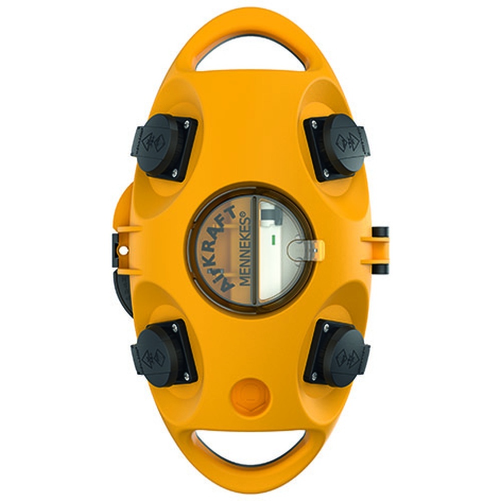Mennekes Steckdosenkombination 94566GE AirKRAFT Steckdosen-Kombination, IP44 Anschlußfertig verdrahtet Schutzart IP 44 Gehäuse 1AMAPLAST-Gehäuse schwarz (ähnlich RAL 9005) und anscharniertem Gerätedeckel (gelb) Absicherung unter transparenter Betätigungsklappe (4TE) Bestückung /Absicherung 4 Schuko-Steckdosen 16A 2p+E 230V 1 FI-Schutzschalter 40A 4p IFN 0,03A Leitungseinführungen/Anschlußmöglichkeit oben verschlossen, zum Ausbrechen 1x M32, 1x M25, 2x M20 1x Durchführung für Druckluftanschluß seitlich verschlossen zum Ausbrechen 1x M25 für 1 Leitung bis 5x6 mm² einschl. Montageösenset (102070) EAN Nr. 4015394209614 Warengruppe Mennekes Steckdosen Kombination