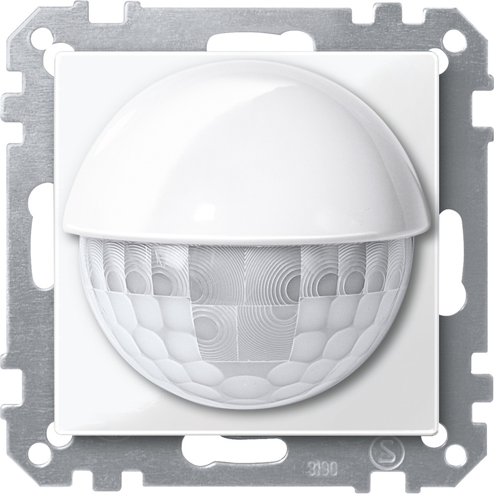 Merten KNX ARGUS 631719 KNX ARGUS 180/2,20 m UP, polarweiß glänzend, System M Im Design System M. Bewegungsmelder für den Innenbereich mit Unterkriechschutz. Bei Erfassen einer Bewegung wird ein durch die Programmierung definiertes Datentelegramm gesendet. Mit integriertem Busankoppler. Für Wandmontage in eine 60er-Einbaudose, optimaler Einsatz bei 2,2 m. Softwarefunktionen KNX: Fünf Bewegungsblöcke: Bis zu vier Funktionen können je Block ausgelöst werden. Telegramme: 1 Bit, 1 Byte, 2 Byte. Normalbetrieb, Master, Slave, Sicherheitspause, Sperrfunktion. Empfindlichkeit, Helligkeit und Treppenlichtzeit lassen sich über die ETS oder das Potentiometer einstellen. Zwei Bewegungssensoren: Empfindlichkeit und Reichweite lassen sich für jeden Sensor separat einstellen. Lernbare Treppenlichtzeit.. Erfassungswinkel: 180 Grad. Reichweite: 8 m rechts/links, 12 m nach vorne (bei einer Montagehöhe von 2,20 m). Montagehöhe: 2,2 m oder 1,1 m bei halbierter Reichweite. Anzahl der Ebenen: 6. Anzahl der Zonen: 46. Anzahl der Bewegungssensoren: 2, sektorbezogen einstellbar. Empfindlichkeit: stufenlos einstellbar (ETS oder Potentiometer). Lichtfühler: stufenlos einstellbar von ca. 10 bis 2000 Lux (ETS oder Potentiometer). Zeit: stufig einstellbar von 1 s bis 8 min (Potentiometer) oder einstellbar von 1 s bis 255 Stunden (ETS). EG-Richtlinien: Niederspannungsrichtlinie 2006/95/EG und EMV-Richtlinie 2004/108/EG. Lieferumfang: Mit Busanschlussklemme und Tragplatte. Mit Abdecksegmenten zur Einschränkung des Erfassungsbereiches. Material: Thermoplast brillant. Farbe: polarweiß glänzend. Typ 631719 EAN Nr. 4042811080266 Warengruppe Merten KNX/EIB