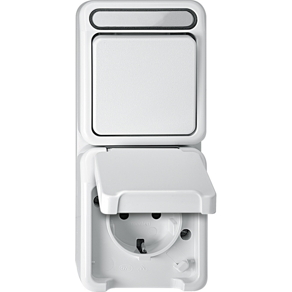 Merten Kombi. SCHUKO Steckd. MEG3494-8019 Kombination SCHUKO-Steckdose mit BRS/ Wechselschalter, polarweiß, AQUASTAR Integrierter erhöhter Berührungsschutz gemäß VDE 0620 Teil 1 (Kinderschutz). SCHUKO-Steckdose: 16 A, AC 250 V. Kombiniert mit Wechselschalter: 10 AX, AC 250 V. Die Einsätze sind beliebig austauschbar gegen andere Geräte des AQUASTAR-Programms. Eigenschaften Schalter:-Frontseitiges Nachrüsten von Beleuchtungsmodulen ohne Schalterdemontage. -Frontseitige Mess- und Prüfkontakte, zugänglich ohne Schalterdemontage. Aufputz-Montage. Mit Steckklemmen. Schutzart: IP 44. Abmessungen: ca. 165x73x60 mm. Zubehör: Schriftfeld-Einsatz AQUASTAR MEG3952-8000. Doppeleinführung AQUASTAR MEG3961-80.. Verbindungsstück AQUASTAR MEG3963-80.. Rohreinführung AQUASTAR MEG3964-8029. Kanaleinführung AQUASTAR MEG3965-80.. Schieber mit Stutzen AQUASTAR MEG3962-8029. Farbe: polarweiß. Typ MEG3494-8019 EAN Nr. 4042811179359 Warengruppe Merten AQUASTAR
