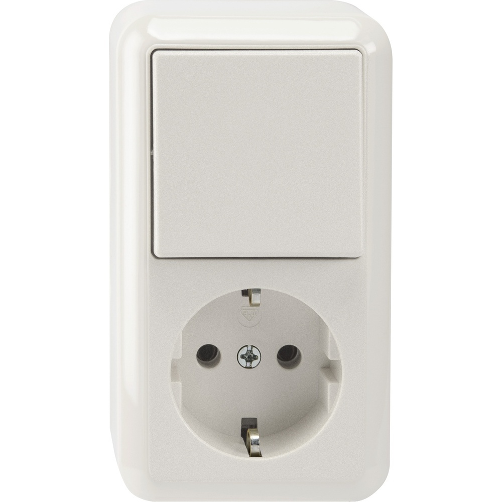 Merten Kombination Steckdose Schalter MEG3495-8719 Kombination SCHUKO-Steckdose/ Aus/Wechselschalter, 1-polig, polarweiß, AUFPUTZ SCHUKO-Steckdose: 16 A, AC 250 V. Kombiniert mit Wechselschalter: 10 AX, AC 250 V. Aufputz-Montage. Farbe: polarweiß. Typ MEG3495-8719 EAN Nr. 4042811184261 Warengruppe Merten Aufputz