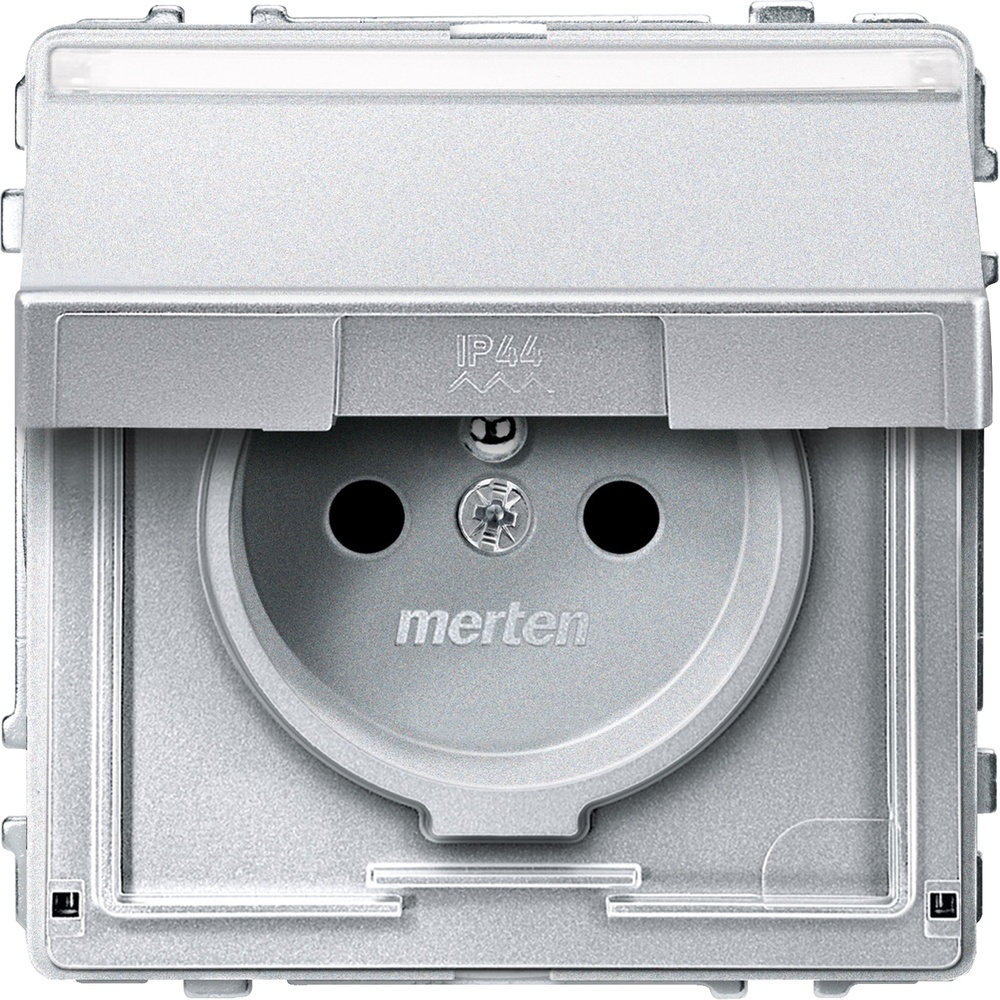 Merten Steckdose MEG2612-7260 Steckdose m. Schutzk.stift, Klappd. u. Schriftf., BRS, SK, aluminium, AQUADESIGN Integrierter erhöhter Berührungsschutz gemäß VDE 0620 Teil 1 (Kinderschutz). Eigenschaften:-Frontseitiges Nachrüsten von QuickFlex-Zusatzmodulen ohne Demontage der Steckdose. -Schnellgewindeschrauben für die Krallenbefestigung. -Versenkte Krallen mit Rückstellfeder. -Hochglanzverzinkter Tragring isoliert zur Kralle. Mit Krallen- und Schraubbefestigung. Mit Schraub-Liftklemmen für starre und flexible Leiter bis 4 mm2. Zubehör: Großes Schriftfeld mit tastbaren Kontrast-Symbol für Wippen und Steckdosen mit Schriftfeld 434791/92/93/94. Farbe: aluminium. Typ MEG2612-7260 EAN Nr. 4042811141868 Warengruppe Merten AQUADESIGN