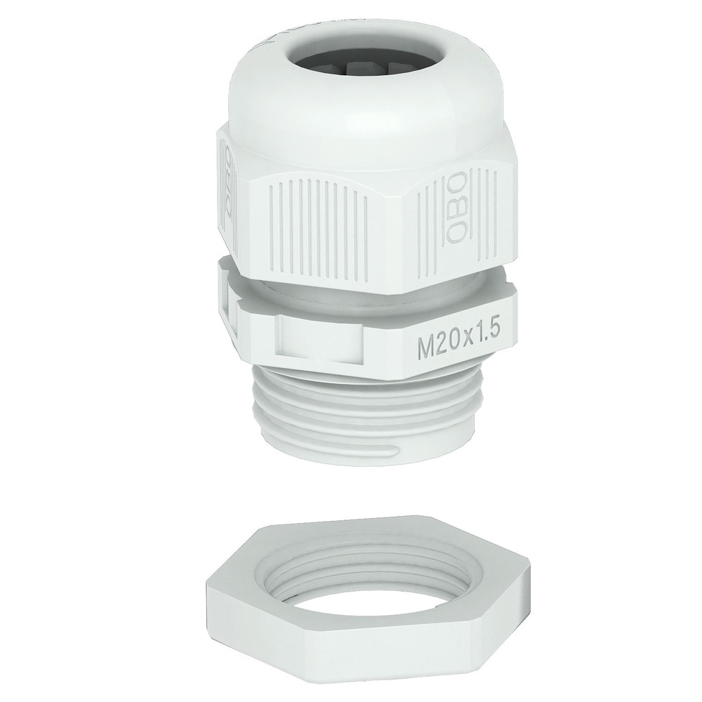 OBO Bettermann Kabelverschraubung 2022776 Typ V-TEC VM63+ LGR Kabelverschraubung mit Gegenmutter M63 Polyamid lichtgrau RAL 7035 Kabelverschraubung mit metrischem Anschlussgewinde in Hutmutterbauart, für Kabelabzweigkästen, Gehäuse, Verteilerschränke im privaten und industriellen Bereich. Mit Zugentlastung und integrierter Dichtlippe, geprüft nach DIN EN 62444. Schutzklasse IP68. Einsetzbar von -20 GradC bis +65 GradC. Inklusive Gegenmutter. Hersteller OBO Bettermann Nr. 2022776 Typ V-TEC VM63+ LGR EAN Nr. 4012195860990 Warengruppe OBO Kabelverschraubungen