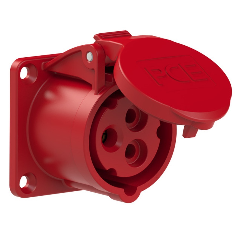 PC Electric Anbaudose 313-9f6 Anbaudose gerade 16A 3p 9h IP44/54 Flansch 60x60-Lochabstand 47x47, mit Schraubklemmen, Gehäusematerial PA6, Kontakte Messing Hersteller PC Electric ( PCE ) EAN Nr. 9003399043796 Warengruppe PC Electric Anbausteckdosen