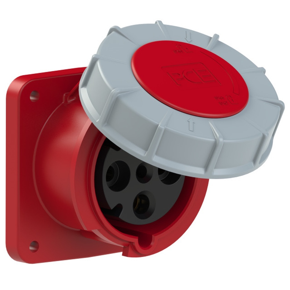 PC Electric Anbaudose 334-6fc Anbaudose gerade 63A 4p 6h IP66/67 Power Twist Flansch 100x107-Lochabstand 77x85, Rahmenklemme mit Schrauben, Gehäusematerial PA6, Kontakte Messing mit Lamellenkontakt CuBe Hersteller PC Electric ( PCE ) EAN Nr. 9003399200144 Warengruppe PC Electric Anbausteckdosen