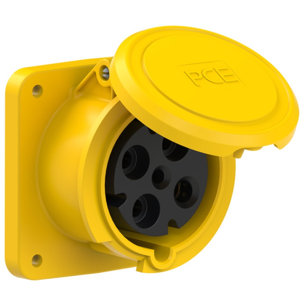 PC Electric Anbaudose 3341-4fc Anbaudose gerade 63A 4p 4h IP44 Power Twist Flansch 100x107-Lochabstand 77x85, Rahmenklemme mit Schrauben, Gehäusematerial PA6, Kontakte Messing mit Lamellenkontakt CuBe Hersteller PC Electric ( PCE ) Warengruppe PC Electric Anbausteckdosen