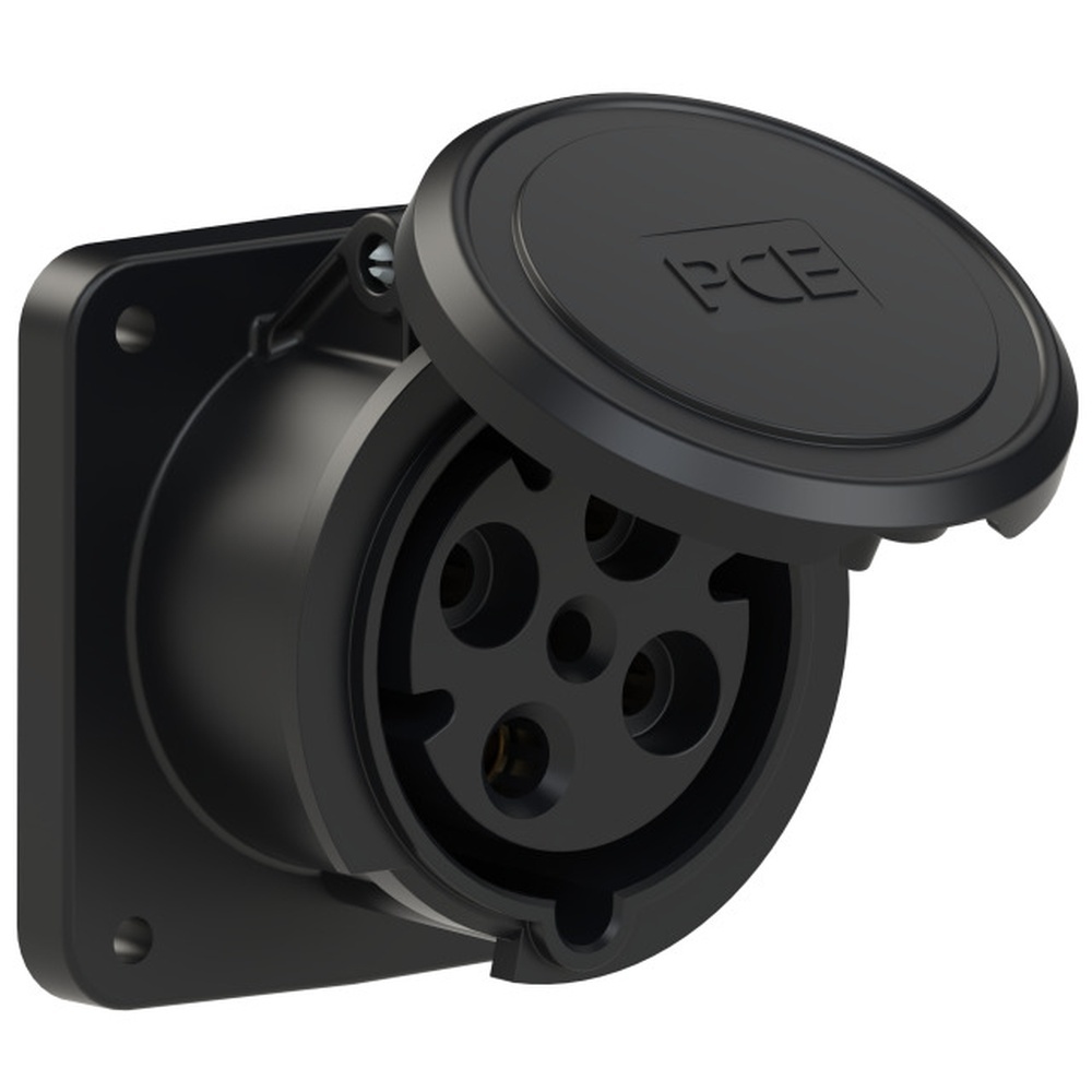 PC Electric Anbaudose 3341-7fc Anbaudose gerade 63A 4p 7h IP44 Power Twist Flansch 100x107-Lochabstand 77x85, Rahmenklemme mit Schrauben, Gehäusematerial PA6, Kontakte Messing mit Lamellenkontakt CuBe Hersteller PC Electric ( PCE ) Warengruppe PC Electric Anbausteckdosen