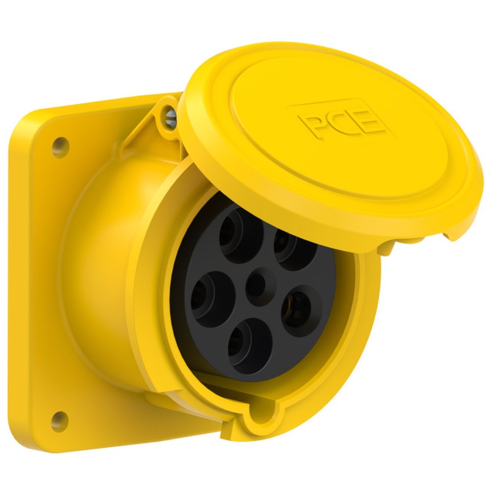 PC Electric Anbaudose 3351-4fc Anbaudose gerade 63A 5p 4h IP44 Power Twist Flansch 100x107-Lochabstand 77x85, Rahmenklemme mit Schrauben, Gehäusematerial PA6, Kontakte Messing mit Lamellenkontakt CuBe Hersteller PC Electric ( PCE ) Warengruppe PC Electric Anbausteckdosen
