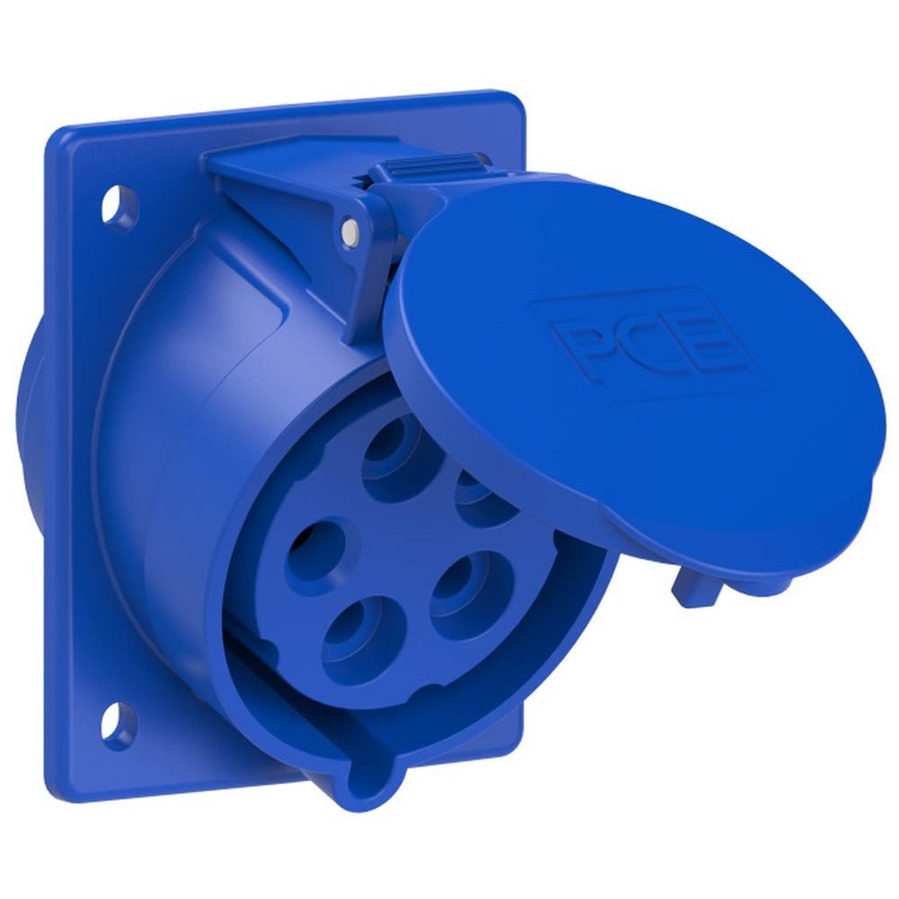 PC Electric Anbaudose 425-9TT Anbaudose schräg 32A 5p 9h IP44/54 Turbo Twist Flansch 80x97-Lochabstand 60x73, schraublose Anschlusstechnik, Gehäusematerial PA6, Kontakte Messing Hersteller PC Electric ( PCE ) Warengruppe PC Electric Anbausteckdosen