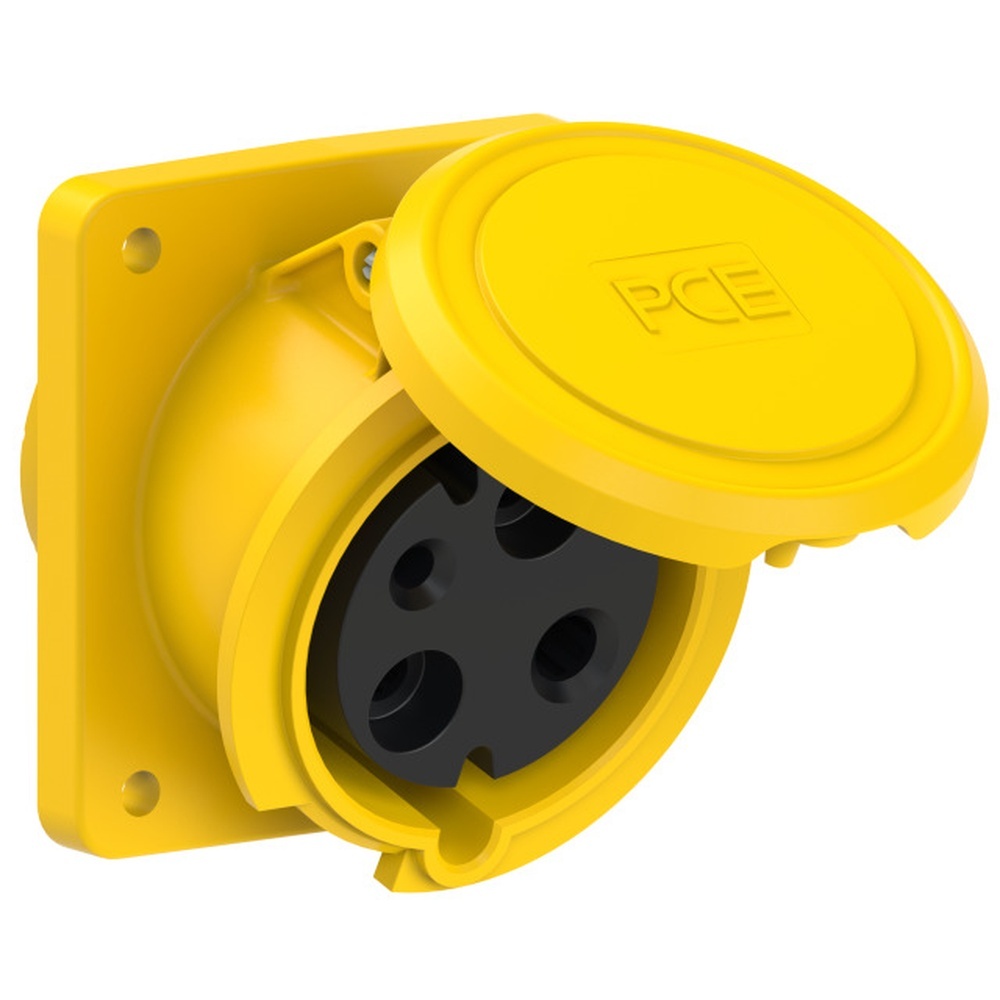 PC Electric Anbaudose 4331-4fc Anbaudose schräg 63A 3p 4h IP44 Power Twist Flansch 100x107-Lochabstand 77x85, Rahmenklemme mit Schrauben, Gehäusematerial PA6, Kontakte Messing mit Lamellenkontakt CuBe Hersteller PC Electric ( PCE ) Warengruppe PC Electric Anbausteckdosen