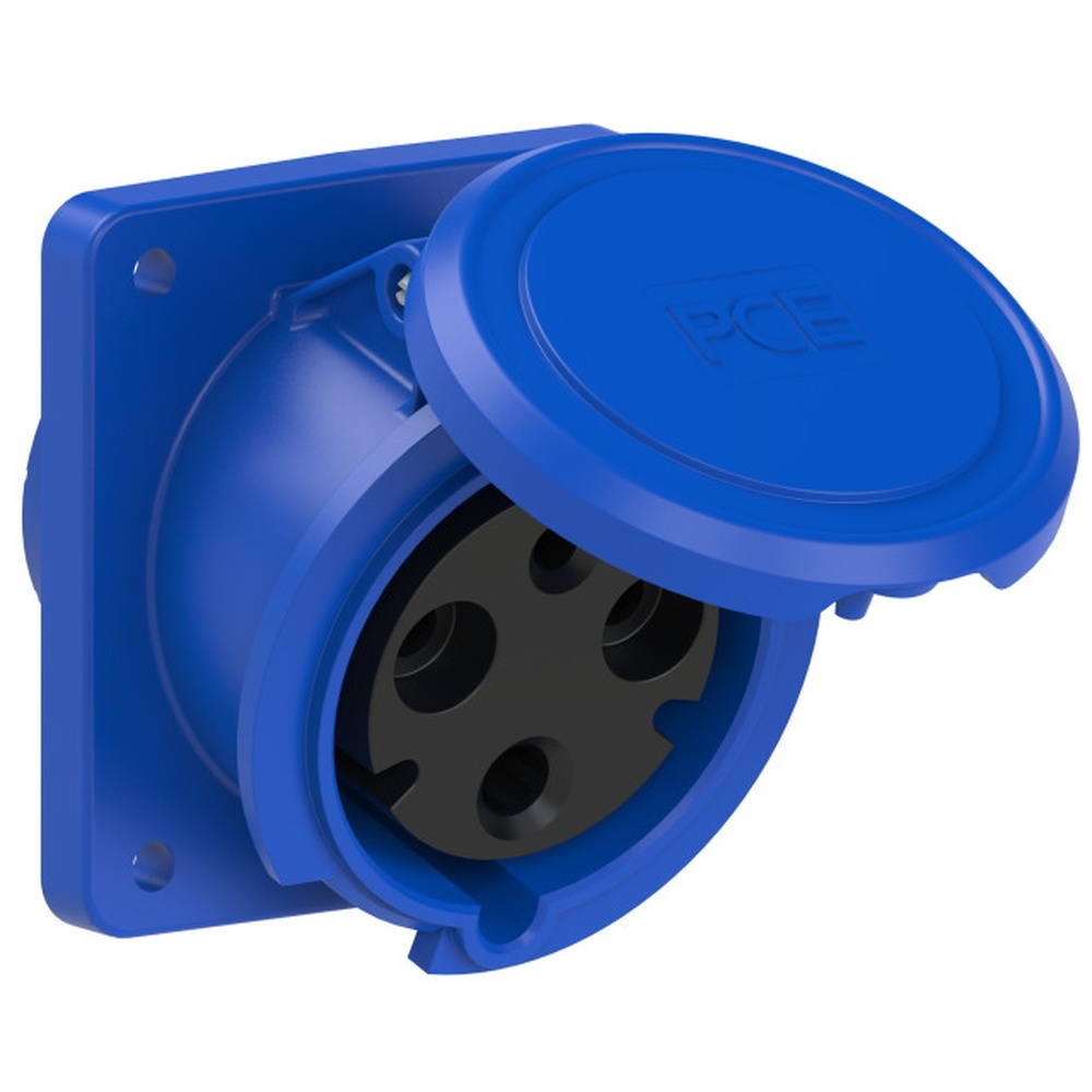 PC Electric Anbaudose 4331-6fc Anbaudose schräg 63A 3p 6h IP44 Power Twist Flansch 100x107-Lochabstand 77x85, Rahmenklemme mit Schrauben, Gehäusematerial PA6, Kontakte Messing mit Lamellenkontakt CuBe Hersteller PC Electric ( PCE ) EAN Nr. 9003399636905 Warengruppe PC Electric Anbausteckdosen
